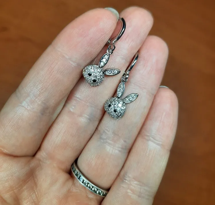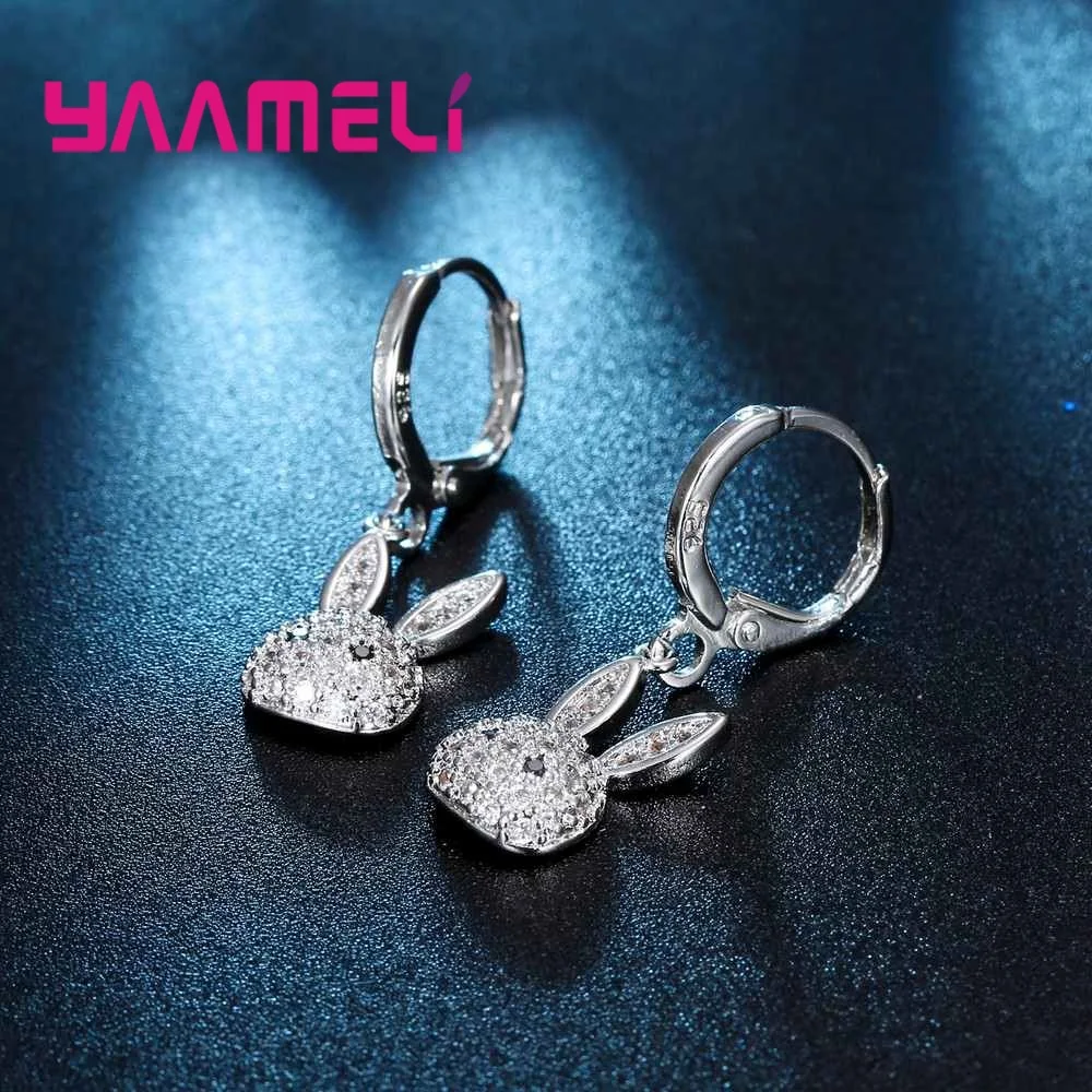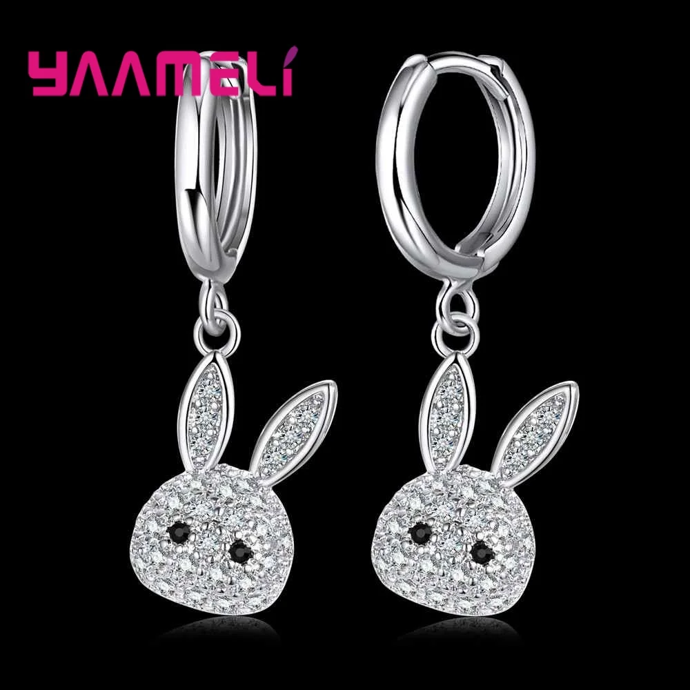 Женские серьги-гвоздики в форме кролика, из стерлингового серебра 925 пробы