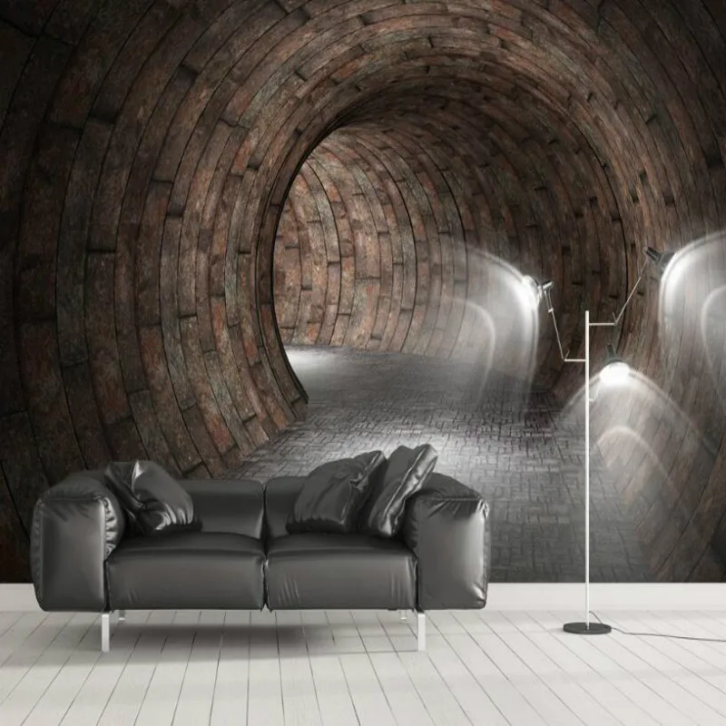 Ретро 3D стереоскопическая серая кирпичная стена расширение пространства туннель настенная бумага Ресторан Бар промышленный Декор настенная бумага 3D