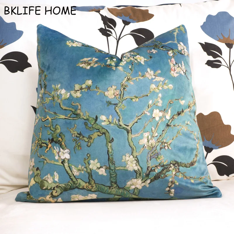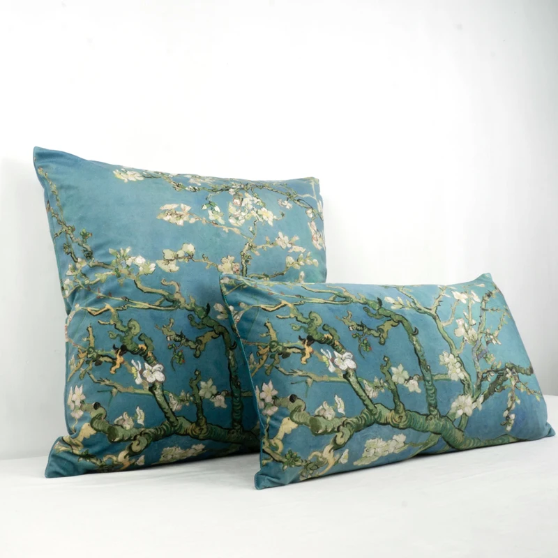 Чехол для подушки, бархатный, с принтом миндального цвета, Ван Гог