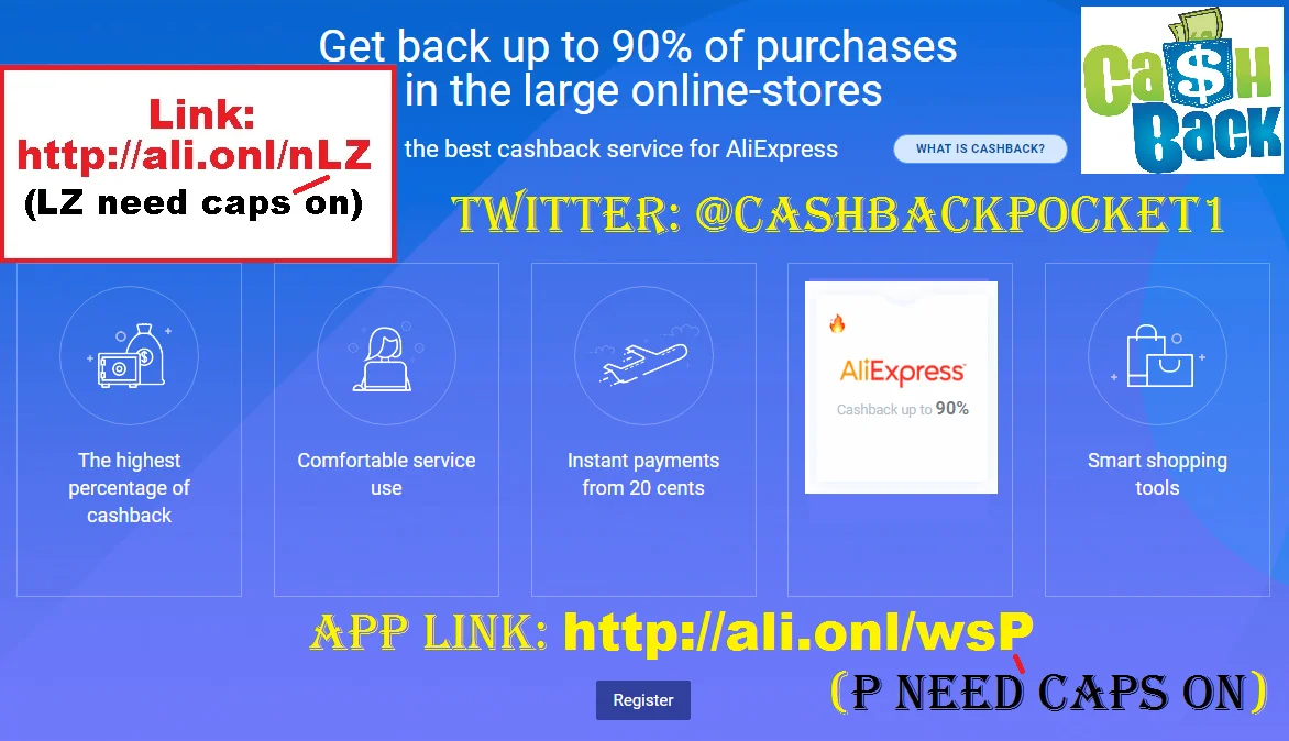 *ON ALL ORDERS*** GET BACK your payment up to 90% when you buy on aliexpress, copy paste link: ali. onl/nLZ (remove the space after dot) or followtwitter @cashbackpocket1, mobile APP link: //ali. onl/wsP ***БОЛЬШОЙ РАБАТ получить обратно ваш платеж до 90% при покупке на Aliexpress, копировать вставить ссылку : ali. onl/nLZ (Удалить пробел после точки) or followtwitter @cashbackpocket1