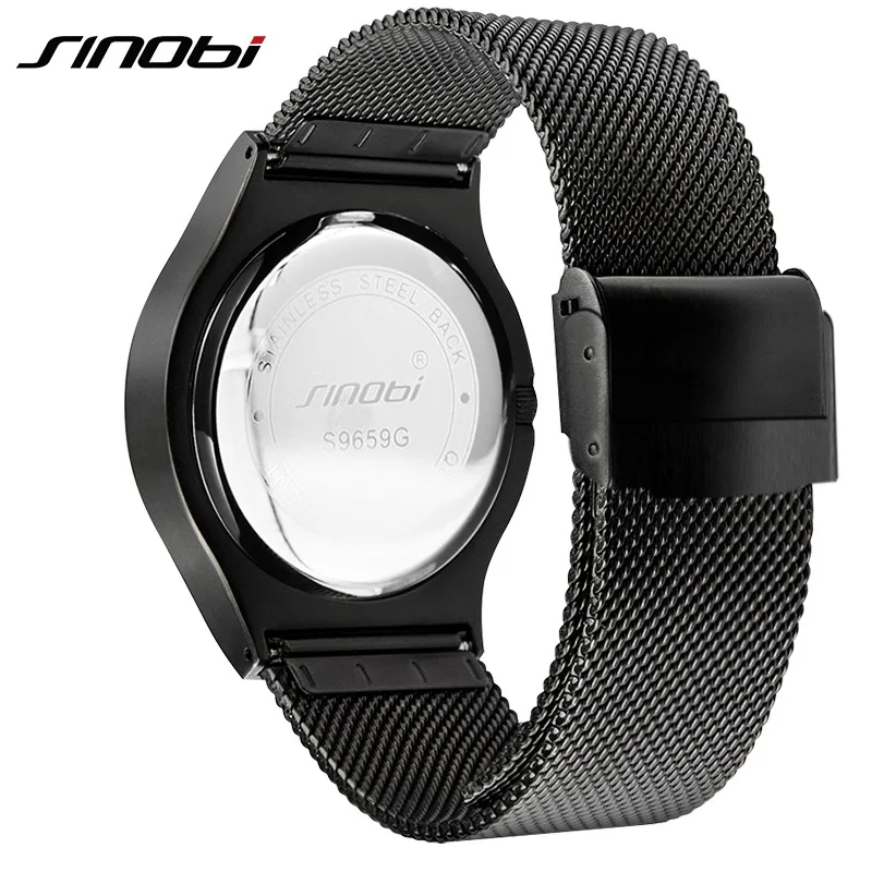 Мужские наручные часы SINOBI, спортивные кварцевые часы с сетчатым ремешком из нержавеющей стали, 2020