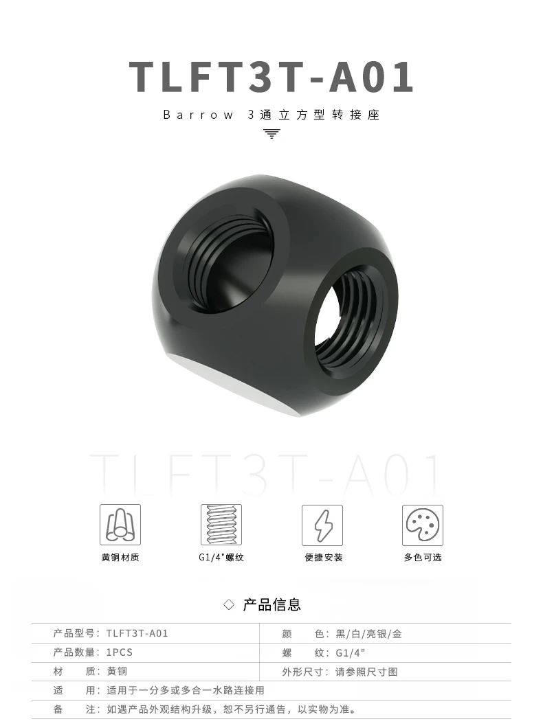 Аксессуары для водяного охлаждения BARROW, 3-ходовой черный или Золотой корпус с кубическим адаптером для кулера G14 "с 3 дорожками4 дорожками, с 3 режимами работы и металлическим креплением