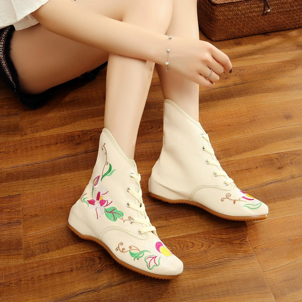 Женские ботильоны ручной работы Veowalk, из хлопчатобумажной ткани с цветочной вышивкой, повседневные короткие ботинки на шнуровке