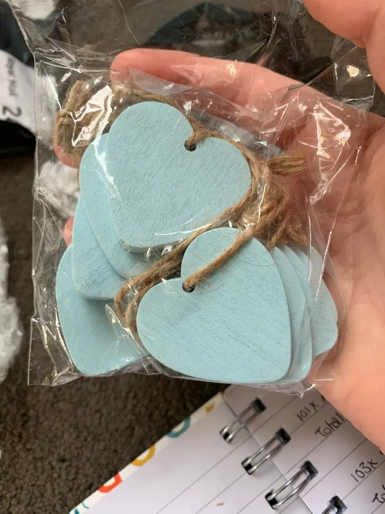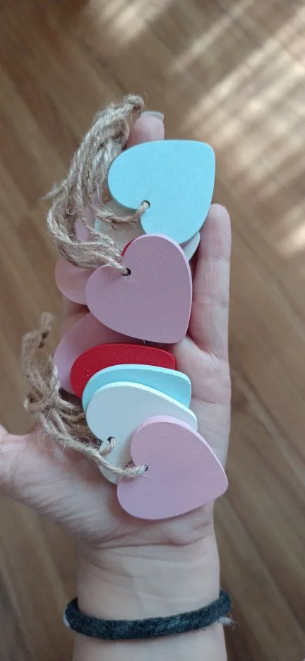 Lovely wee pink wooden hearts, great price, speedy delivery, well packaged.