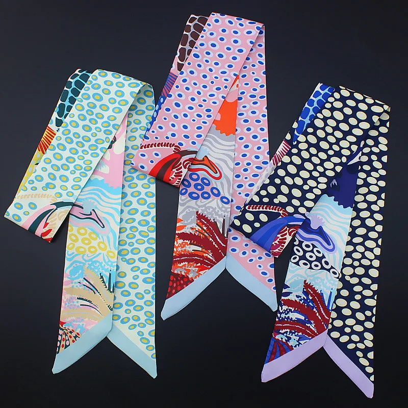 Шарф женский Шелковый в горошек, с принтом морского дна и черепаховых рыбок, модный головной платок