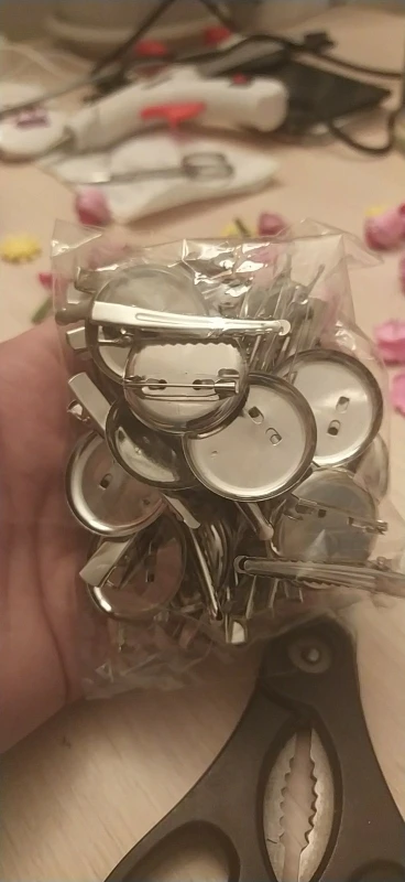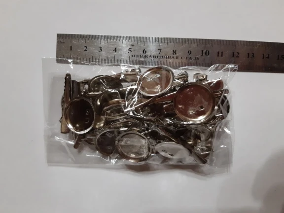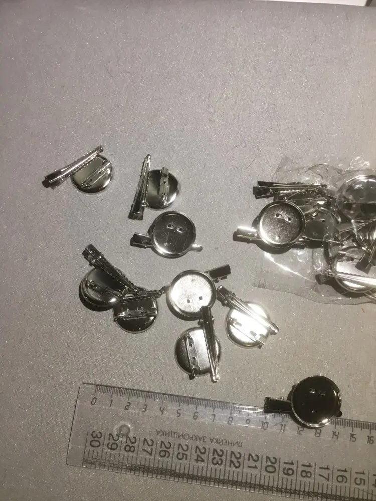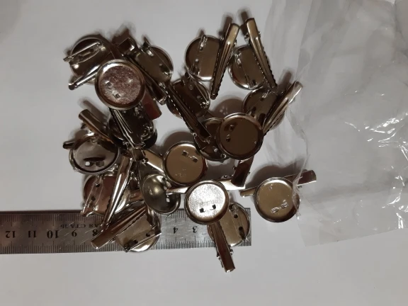 Заказ сделала 12/11-20/12 получила товар на почте.Сами заколки хорошие,но размер не соответствует действительности. Я брала как 25мм,а они 22мм,хотела использовать с кабошонами размером 25мм,не подходят.Теперь буду думать,как использовать.Видимо надо было заказать 30мм. Спасибо.Количество всё точно.