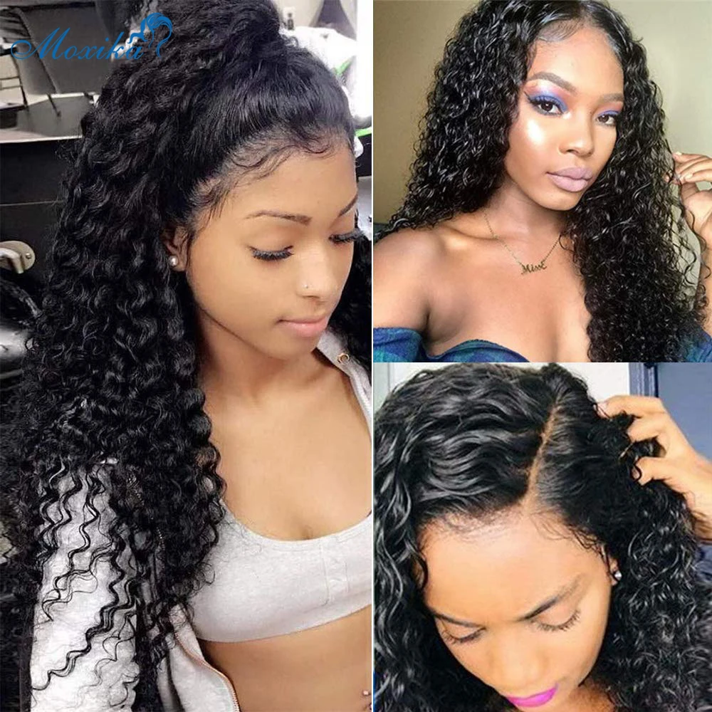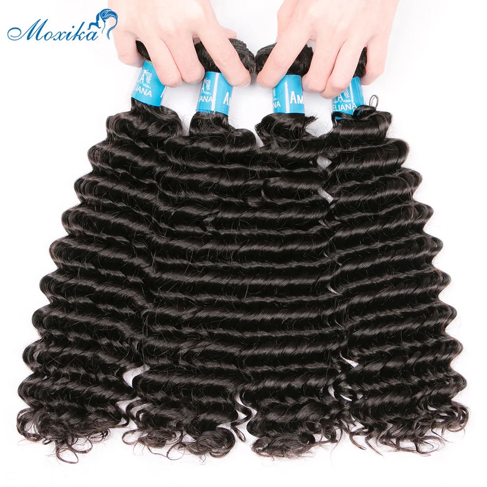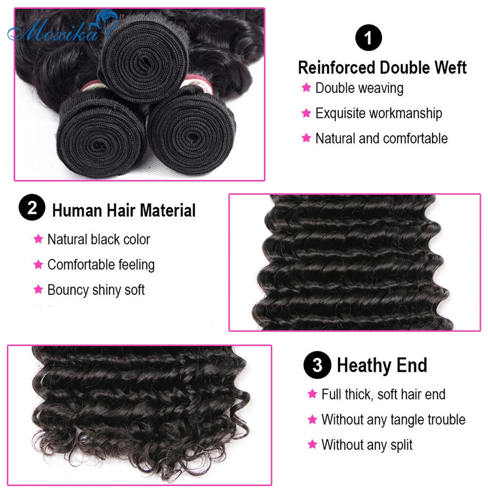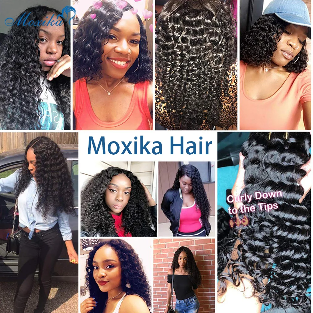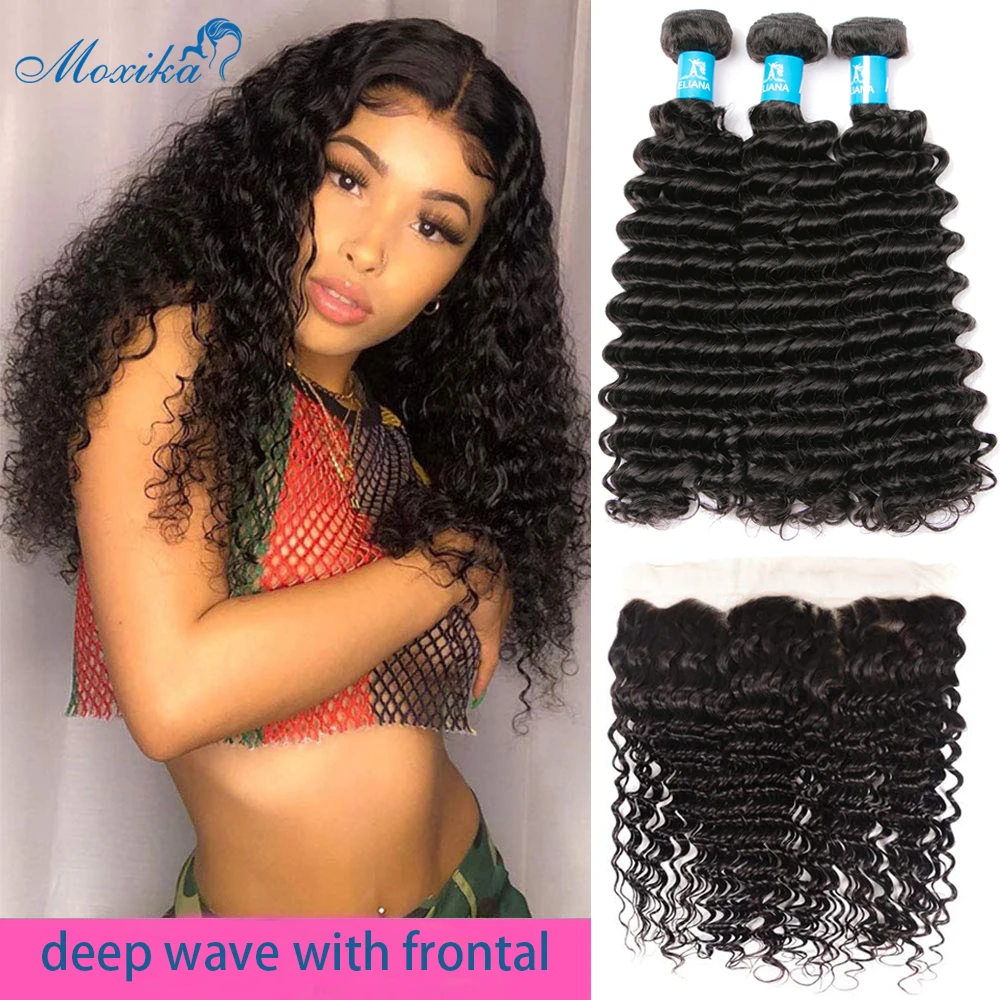 Moxika глубокие волнистые пряди с фронтальным бразильским плетением волос 3 пряди с застежкой от уха до уха Remy человеческие пучки волос с застежкой