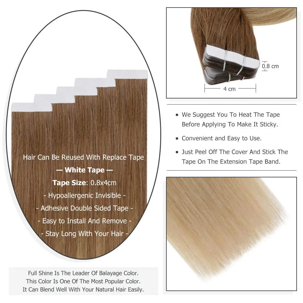 A: полная Блестящая лента для наращивания волос использует самую прочную белую ленту. И это надежная и удобная лента. Полная Блестящая лента для наращивания волос-самый популярный способ в салонах. Лента для наращивания волос является 100% натуральной и не требует никаких инструментов или химических веществ. Для нанесения всей головки с нулевым повреждением требуется менее часа.