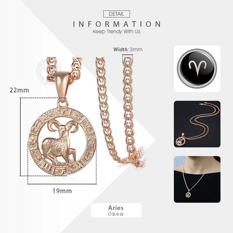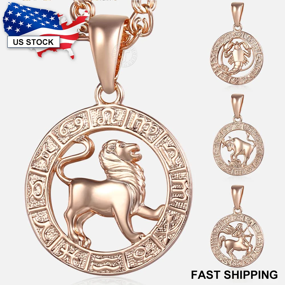 Davieslee ожерелье с подвеской для женщин 12 Знак зодиака, созвездие, желтое розовое золото , женское s круглой формы LGPM16