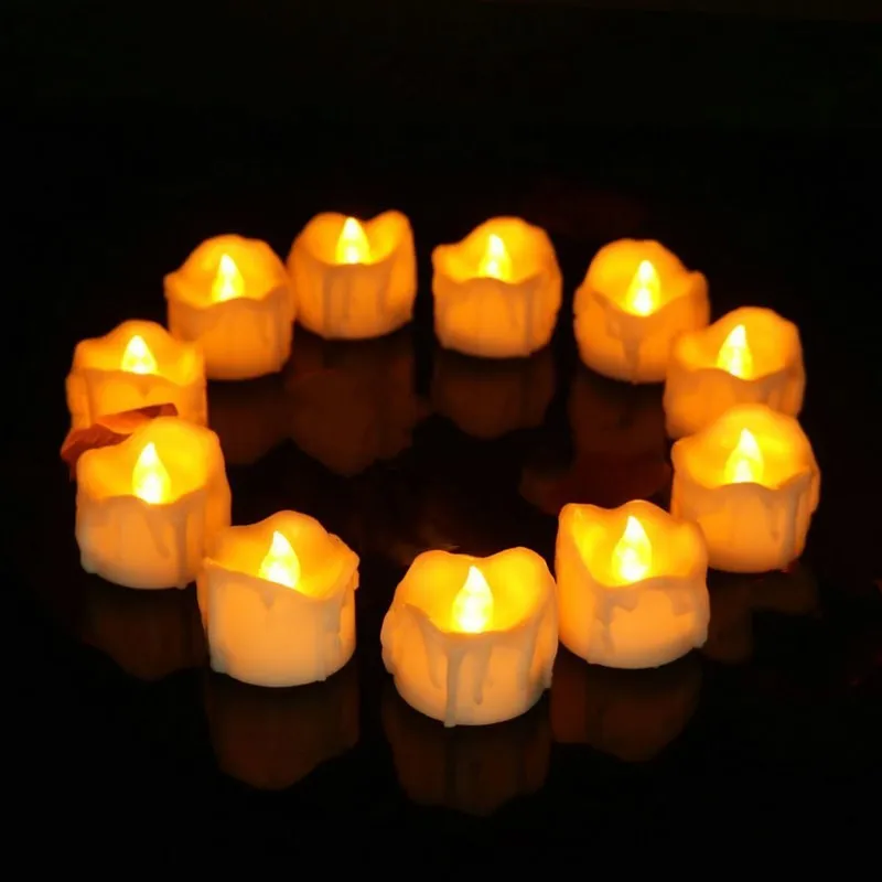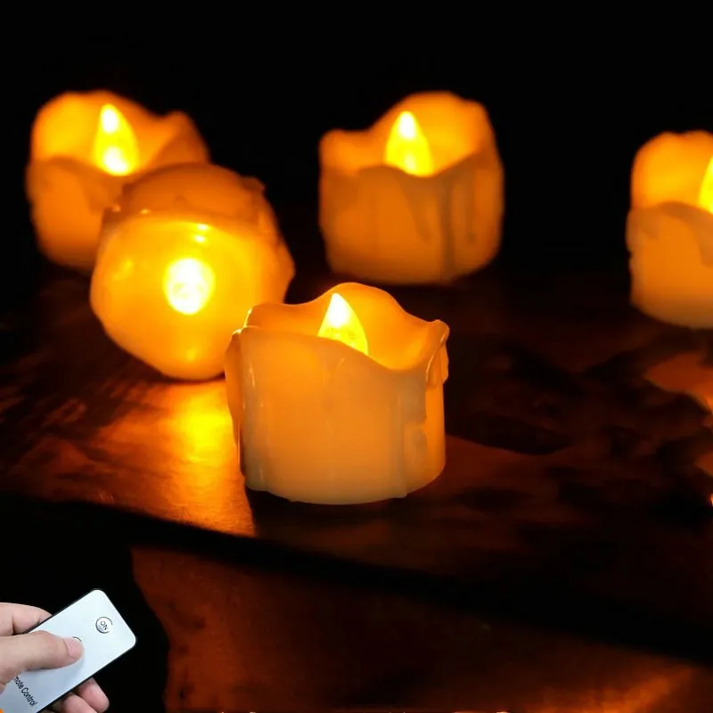 Светодиодная лампа для свечей с пультом дистанционного управления, 12 шт., с контроллером, погружная батарея, Wax, домашний декор для свадебной вечеринки, янтарный цвет