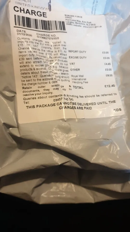 Другой продукт с оплатой доставки 0,94, вы прибыли в большой пакет, где, когда вы снимаете в почте, я заплатил налог 12,40 фунтов, osea в большом пакете отправил 26 заказов с октября и ноября, поэтому они заставили меня платить налоги Это решение позволит вернуть мне то, что я заплатил, потому что я приветую их легче делать большую упаковку и размещать все заказы, Поэтому укажите это в своей заявке, так как вы хотите получить заказы, если попрошайничаете или просто упаковываете все, если вы согласны платить налог или ожидать, что товары будут доставлены немного, один s Бесплатная доставка и другие оплачиваются за доставку