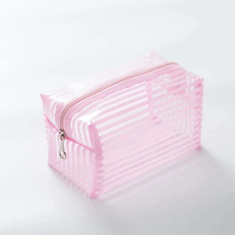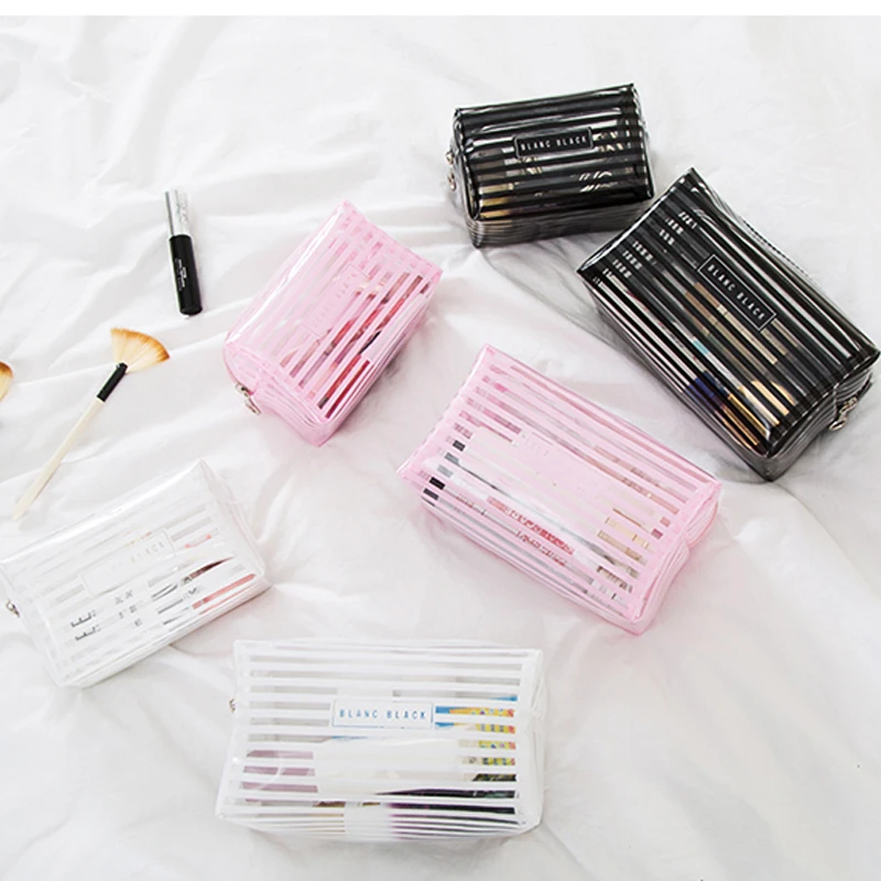 Портативная Водонепроницаемая прозрачная сумка для макияжа, Модный Полосатый органайзер для косметики на молнии, Женская дорожная сумка для туалетных принадлежностей