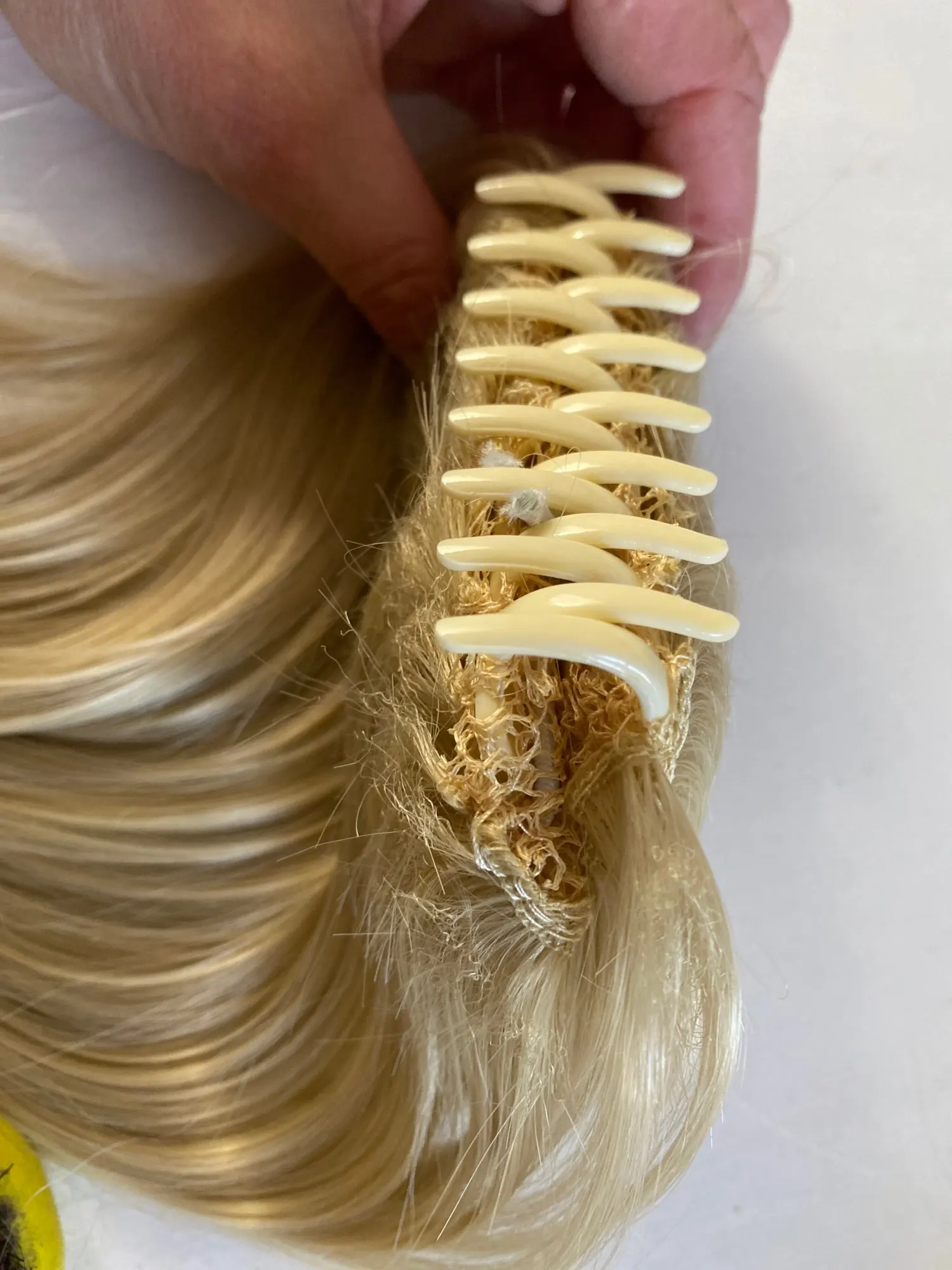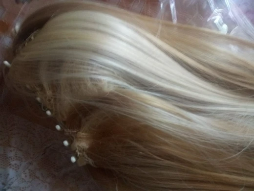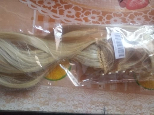 Товар прибыл довольно быстро, но я немного разочарован качеством... Это не очень хорошо сшито, и вы видите, что сетка внизу, а также направление переплетения было сшито в сетку, это противоположное направление от того, что должно было быть. НО жаль об этом. Волосы мягкие, но немного просвечивают.-(