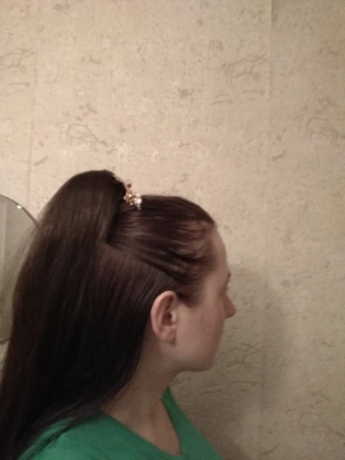пришло быстро. качество не очень, около заколки как будто запутанный клачек