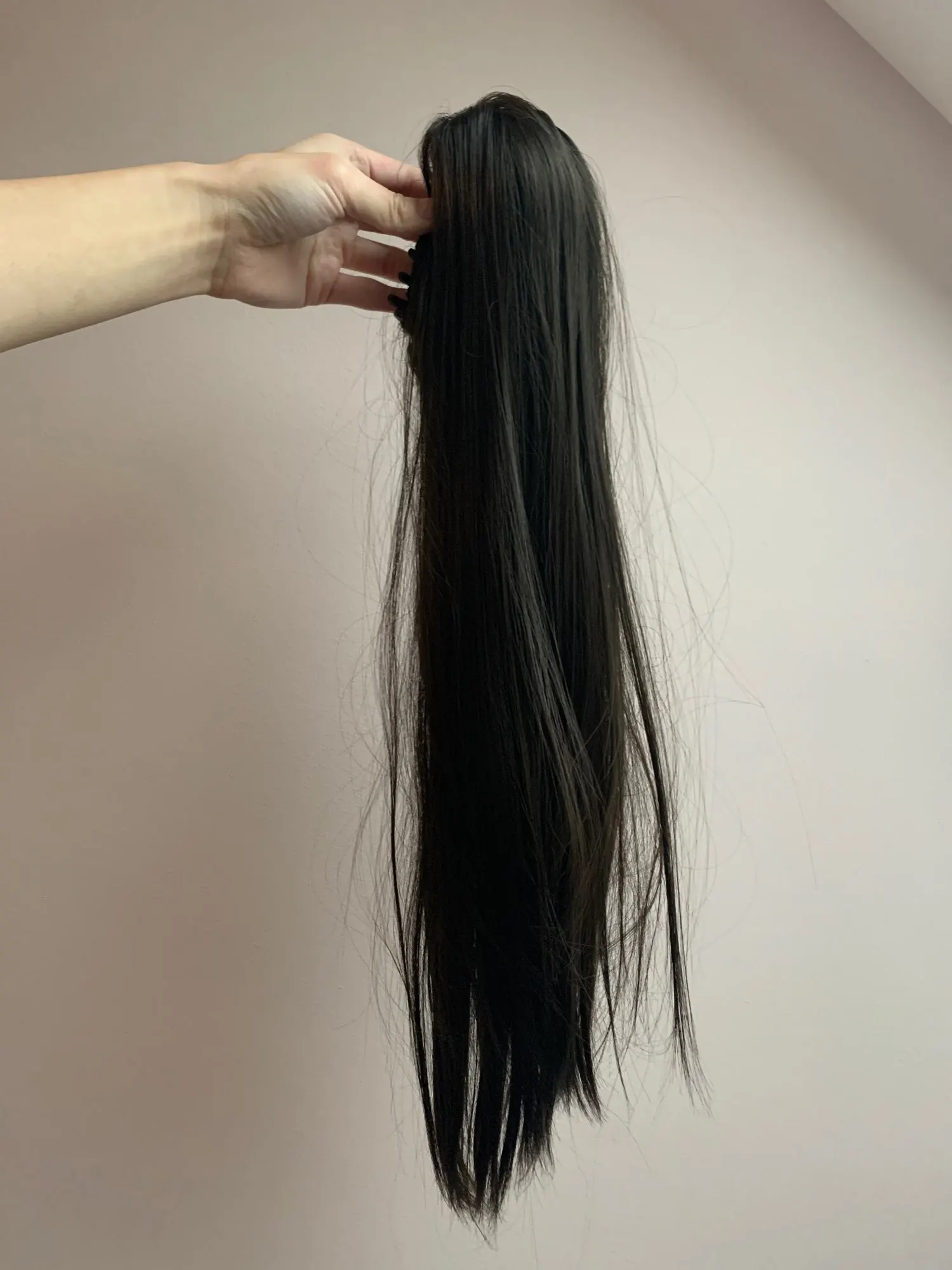 Отличный хвостик. С цветом угадала идеально. Блеска синтетического нет. Не слишком пышный, но это имитирует натуральность. Саму заколку не видно. Доставка быстрая. Продавцу процветания!