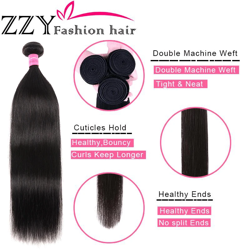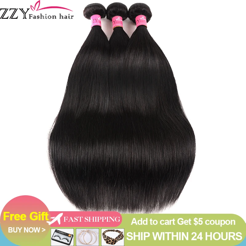 Модные перуанские прямые волосы ZZY, 3 пряди, наращивание человеческих волос 1B, волнистые человеческие волосы без Реми