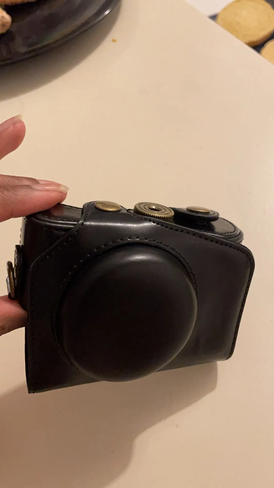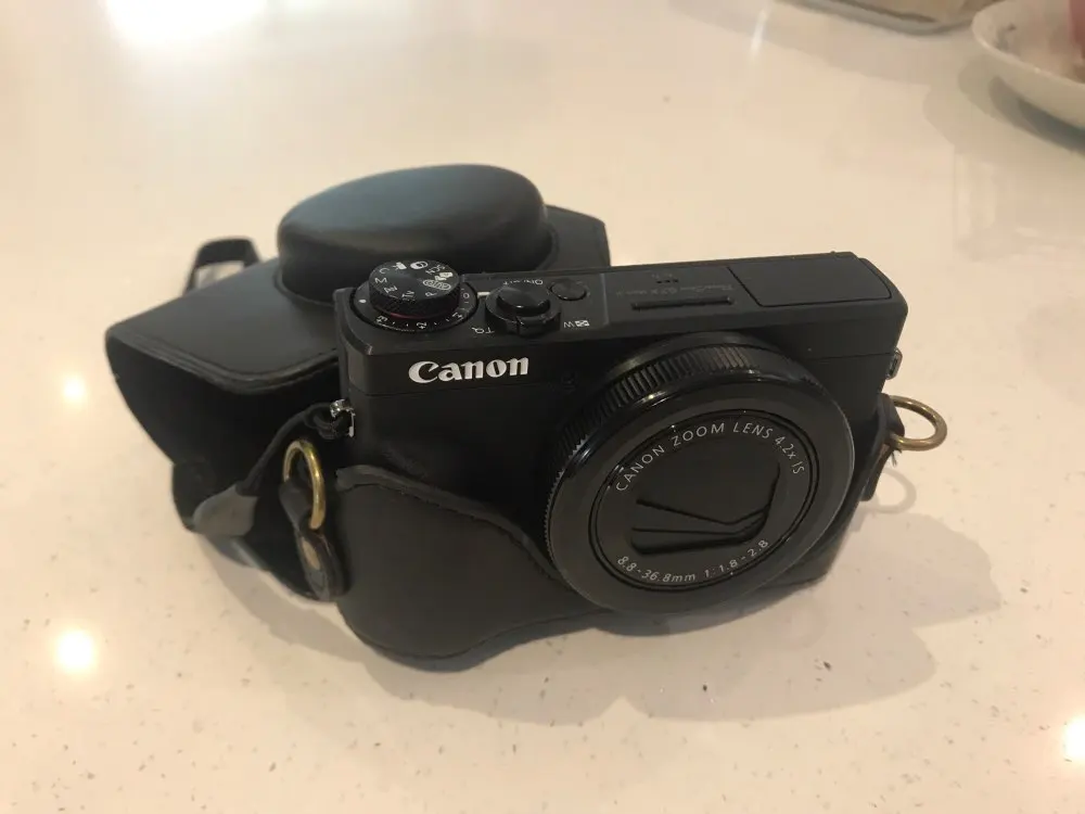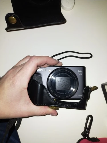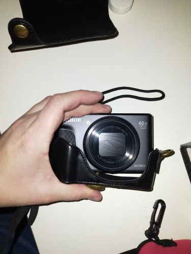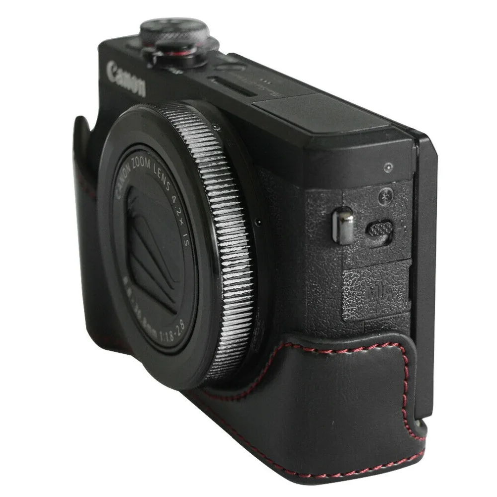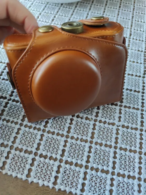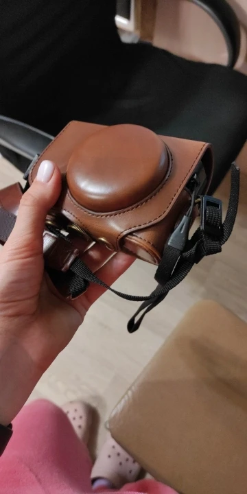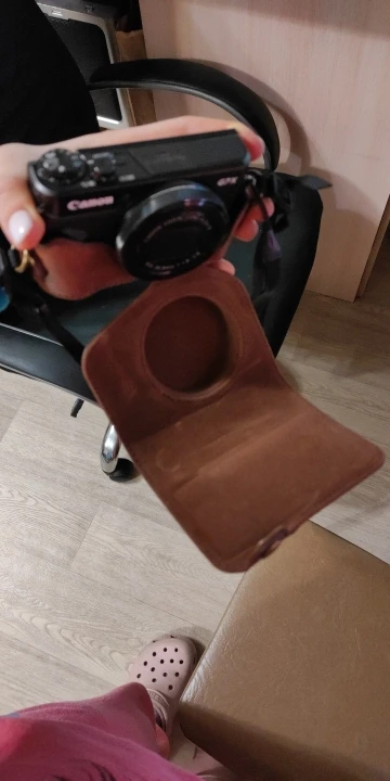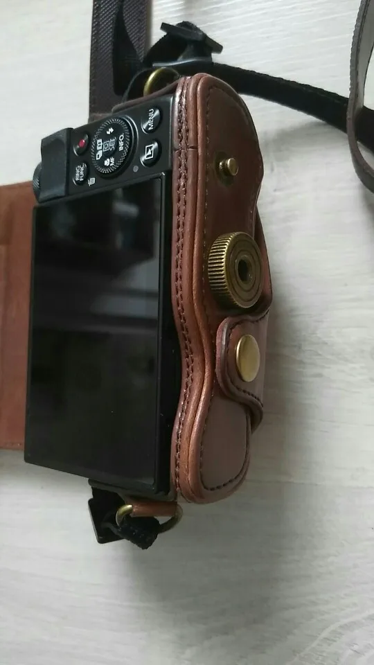 Идеально подходит для камеры Canon G7X. Приятный материал. Приятно, что он поставляется в двух частях с кнопкой, поэтому камера полностью покрыта или может быть использована (также защита во время обуви).