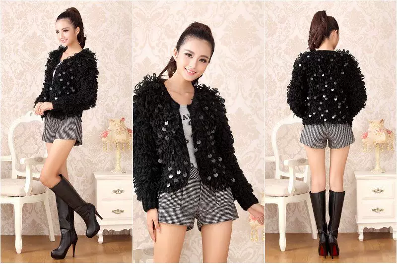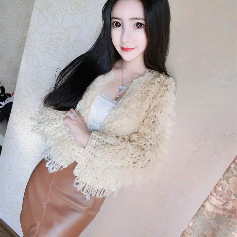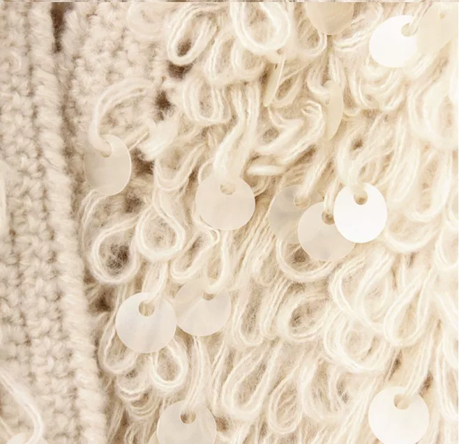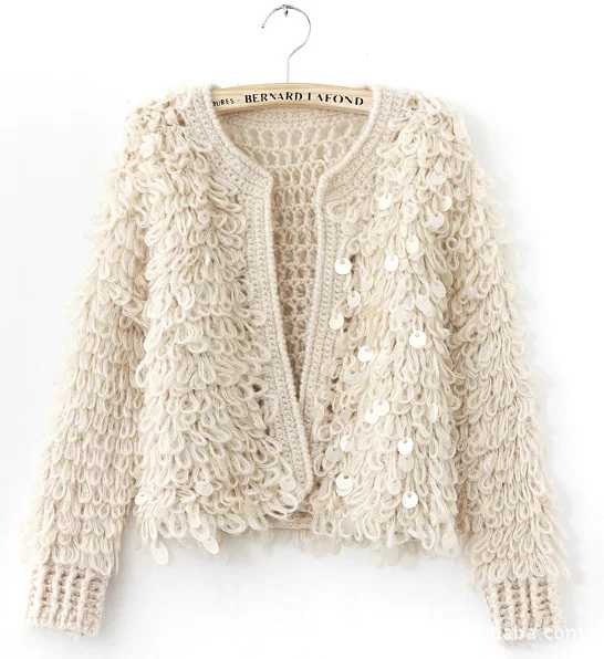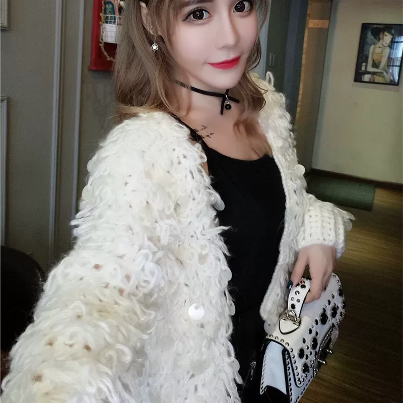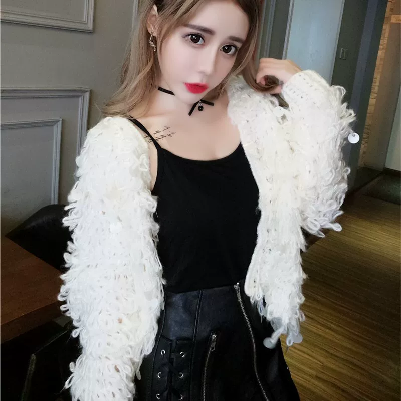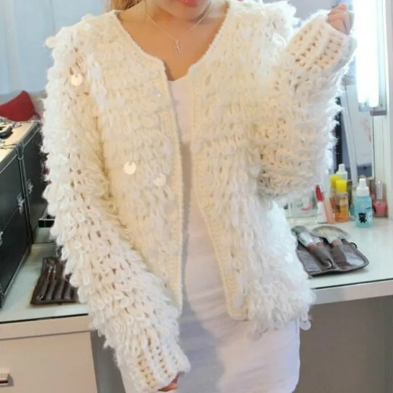 Женский мохеровый ажурный вязаный кардиган с блестками, свитер, модное короткое пальто с блестками, уличная одежда с открытым стежком