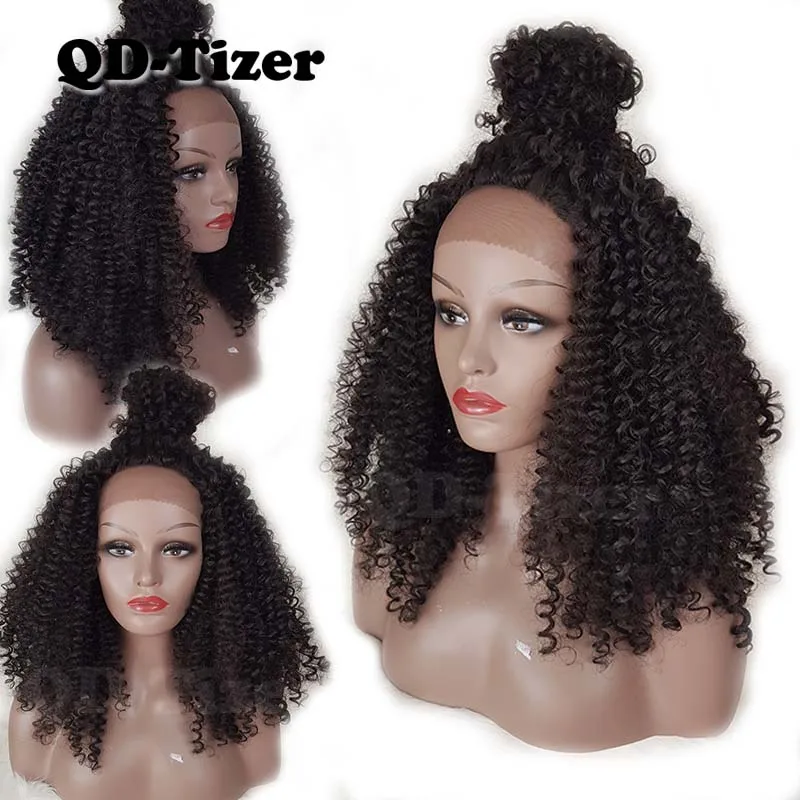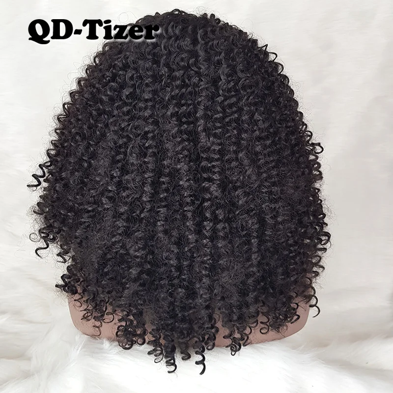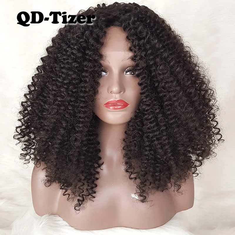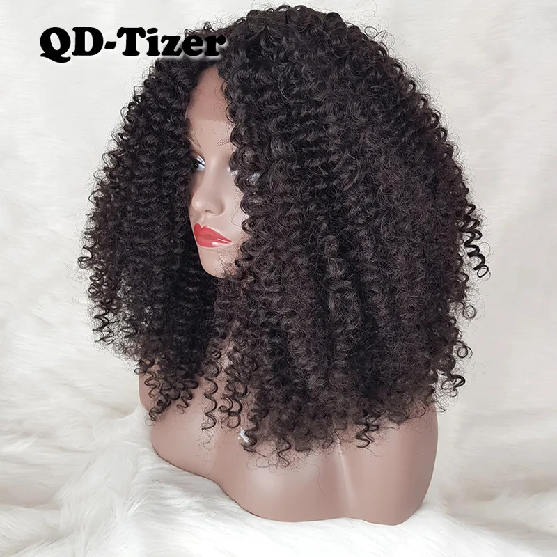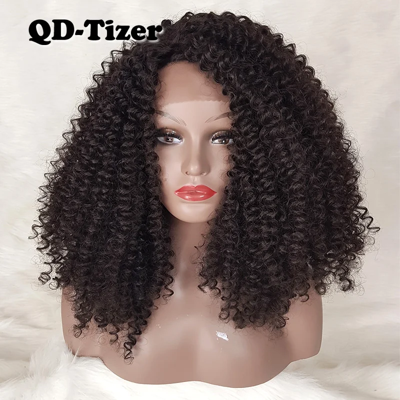 QD-Tizer афро кудрявый парик Жаростойкие синтетические волосы на фронте парик натуральный волос бесклеевая парик натуральный цвет
