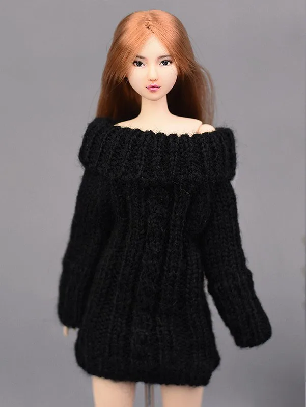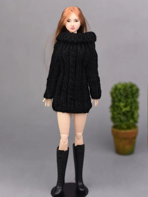 Черный вязаный тканый свитер ручной работы для куклы Барби, одежда, топы, пальто, платье, кукольная одежда, подарки для детей аксессуары для игрушечной куклы