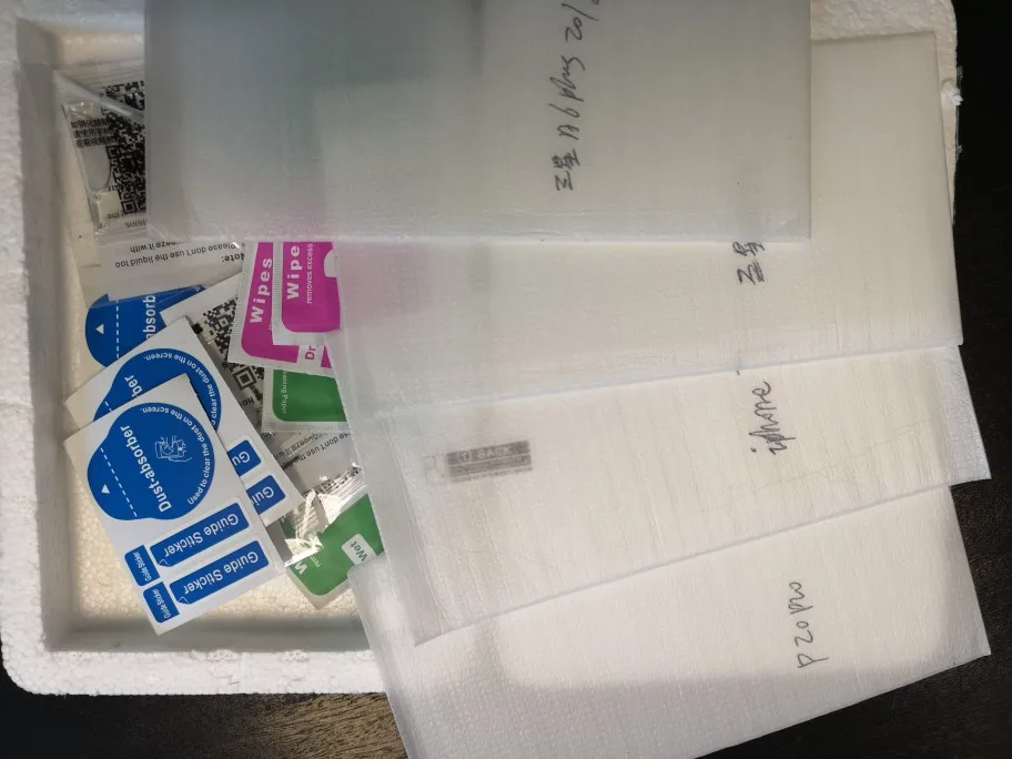 Посылка 1x матовое закаленное стекло для защиты экрана 1X сухие салфетки для чистки 1x влажный спирт Swrap 1 стикер для удаления пыли