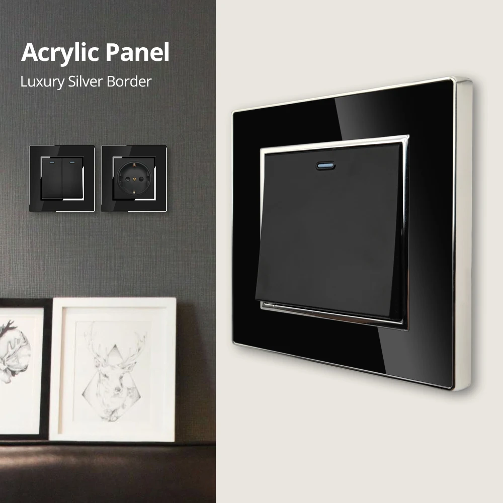 Черная акриловая панель Wallpad с серебряной рамкой, 1234-клавишные электрические розетки и переключатели, штепсельная Вилка для бритвы с USB-разъемом для США и Великобритании