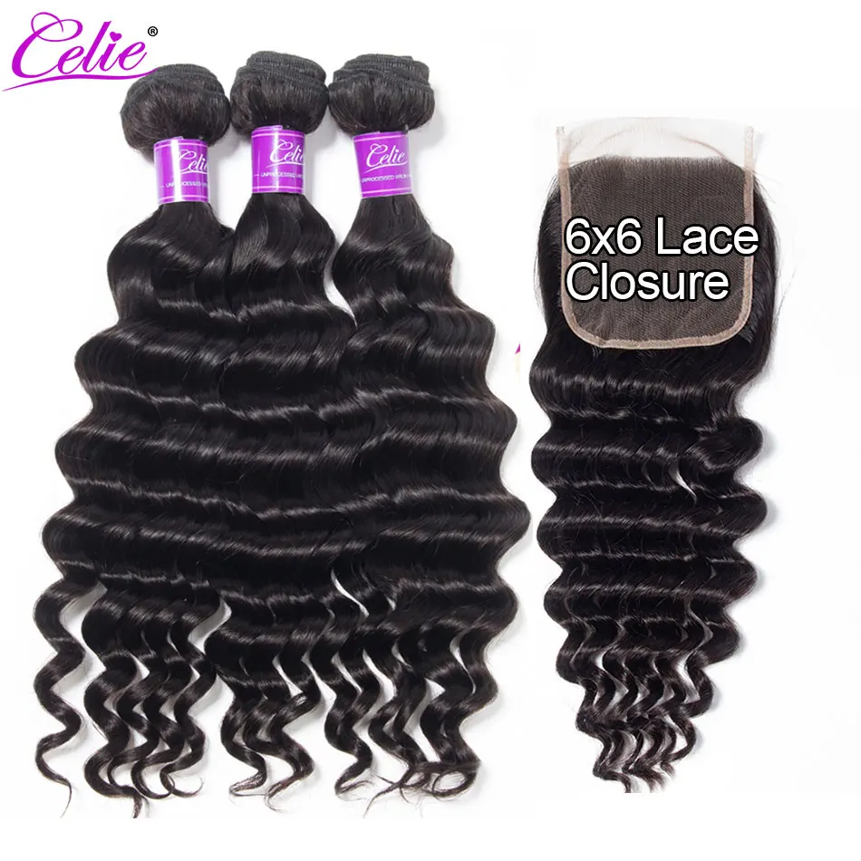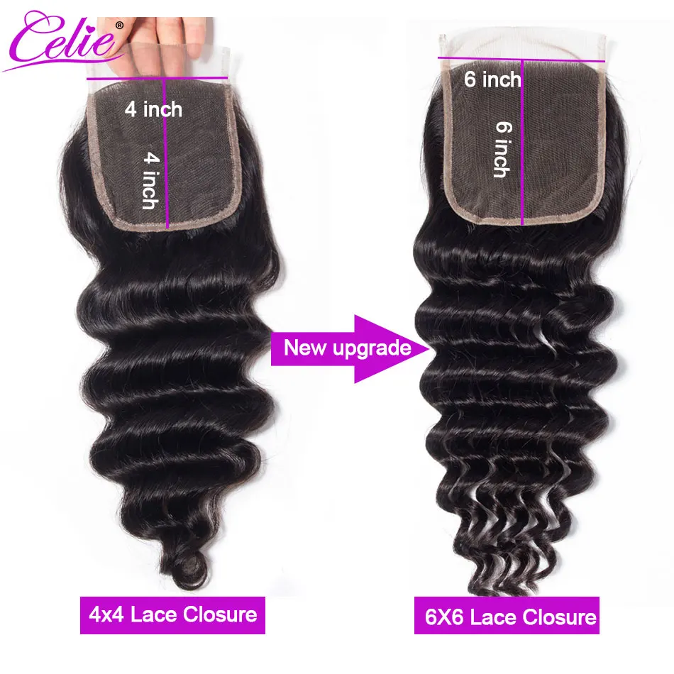 Волосы Celie, бразильские свободные, крупные волнистые пучки с застежкой, 3 пряди с 6x6 кружевами, искусственные пупряди с застежкой
