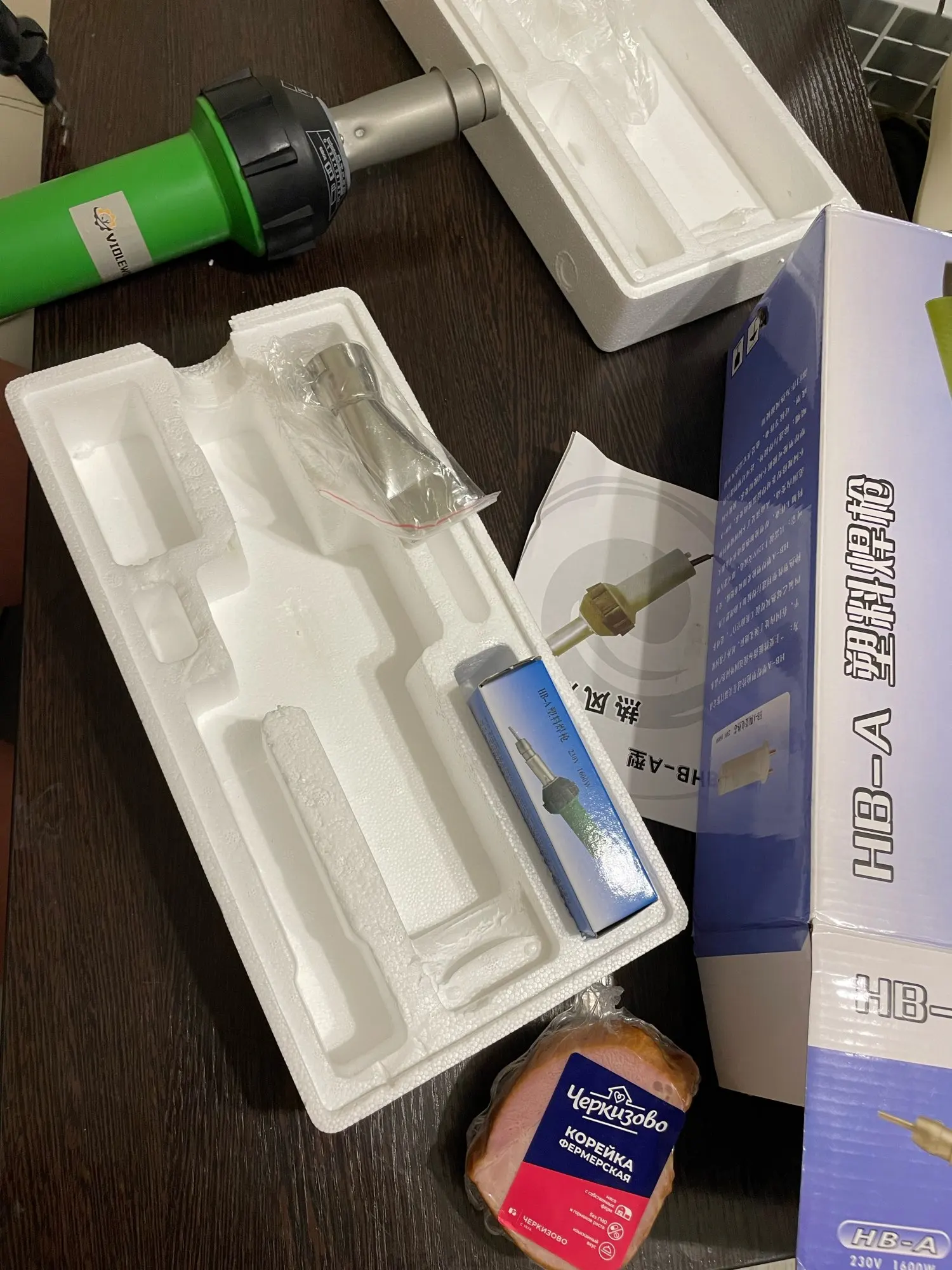 Доставка 5 дней. Пришёл полный комплект. Выглядит добротно. Отдельное спасибо за переходник на вилку для российских розеток. Но фен очень слабый. Мембрану пвх не паяет. Может мощность теряется из-за переходника. Возможно если сменить нагревательный элемент, он будет греть сильнее и расплавлять мембрану. В общем заявленная мощность и рабочая температура - просто надпись в рекламе. Работаю на велде и станиксе (1550w) -они все плавят, а этот(1600w) нет. За 3700 (11.11) было грех не попробовать купить)