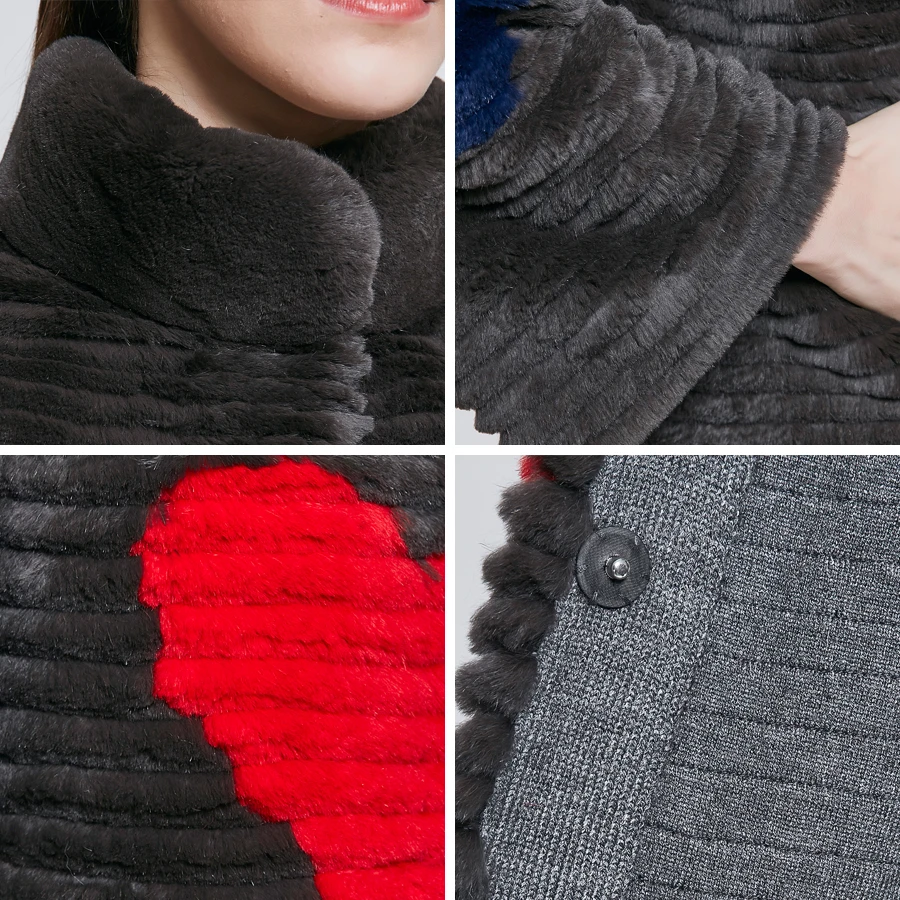 Женское пальто с натуральным мехом ZIRUNKING, теплая вязаная одежда в полоску из натурального куртка с мехом кролика рекс на осень, модная верхняя одежда ZC1804