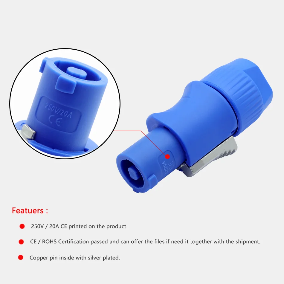 10 шт.лот 3-контактный разъем питания переменного тока, штекер, разъем питания постоянного тока, 20A250 В, для сценического освещения, светодиодного экрана, синийбелый