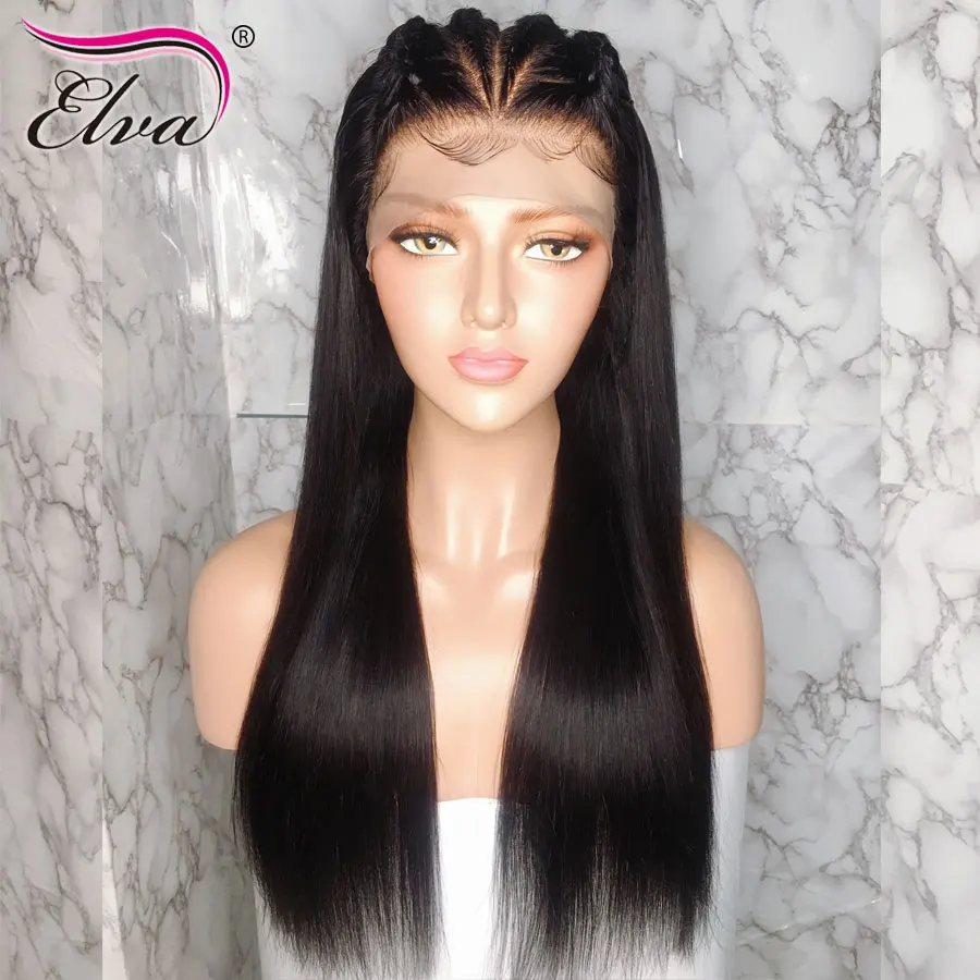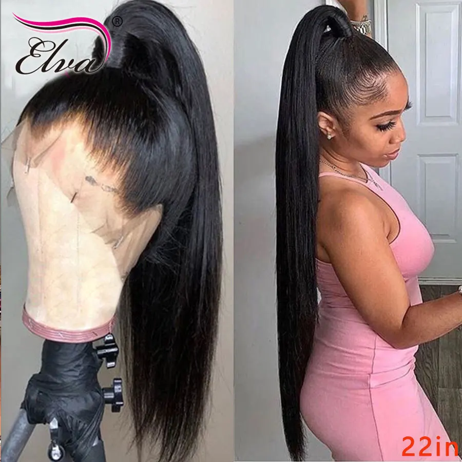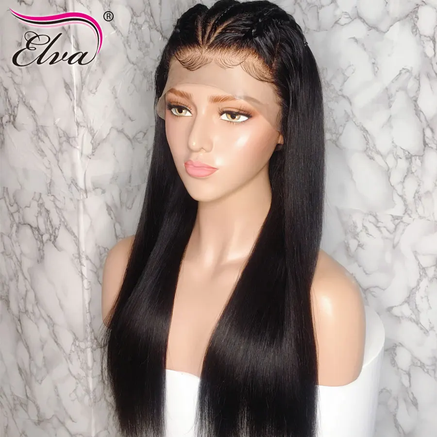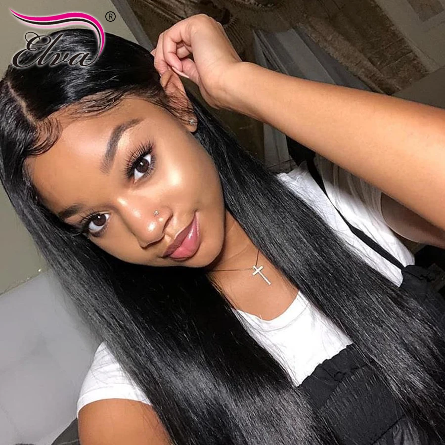 Парик Elva с прямыми кружевами спереди, предварительно выщипанные искусственные волосы для кожи головы, 13x6, парики из натуральных волос на кружевной основе для чернокожих женщин, парик на кружевной основе