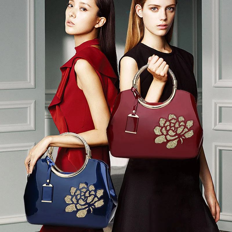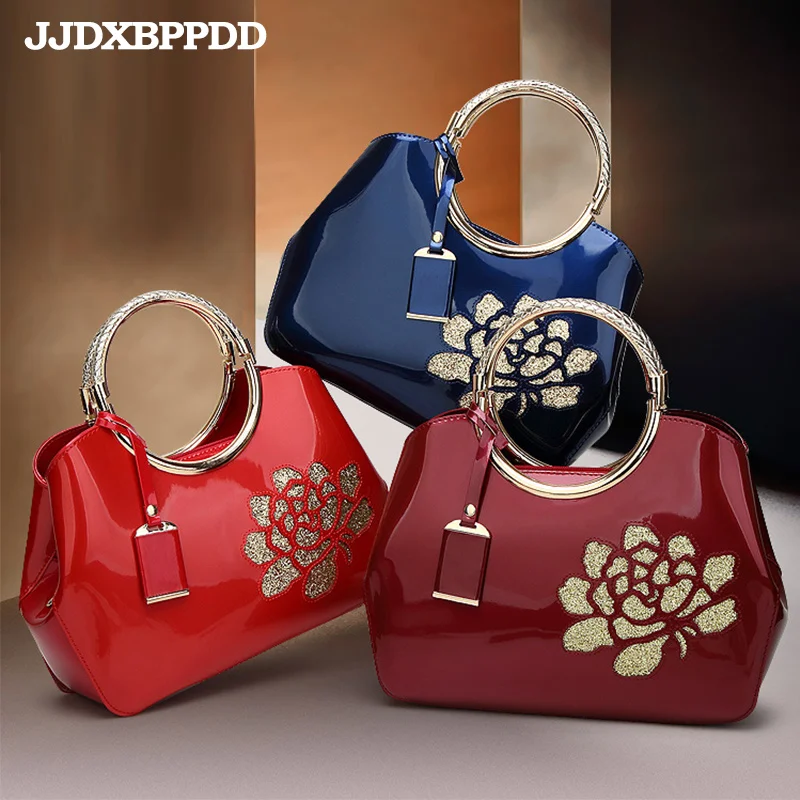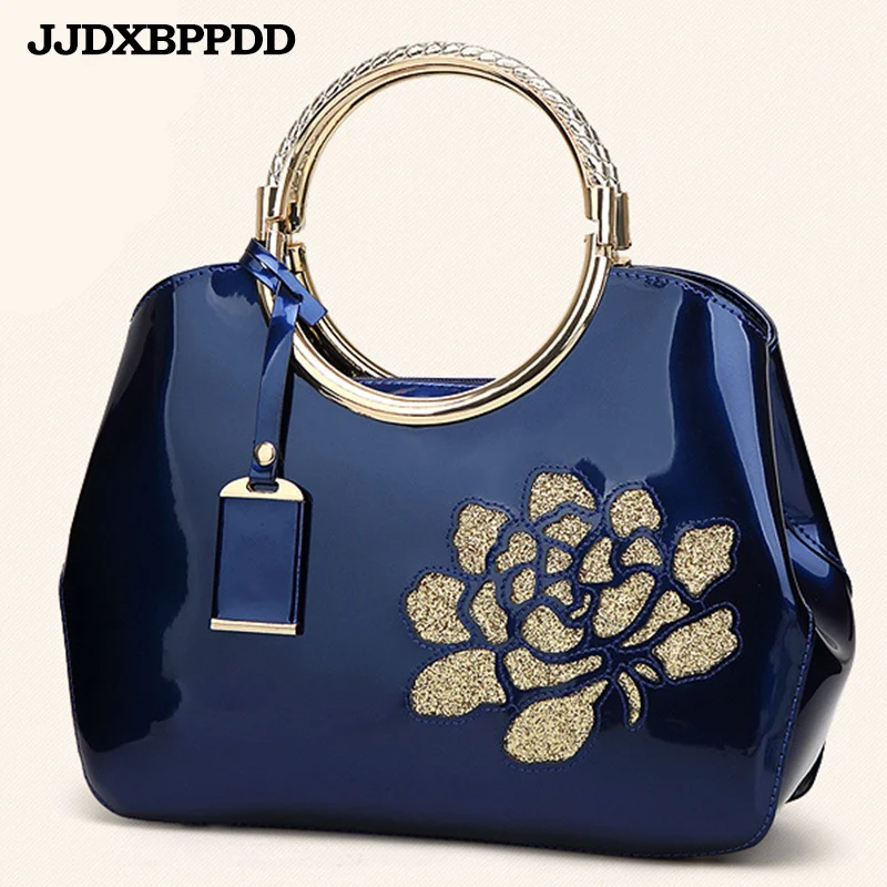 Роскошная женская сумка с вышивкой и блестками, из лакированной кожи, известного бренда