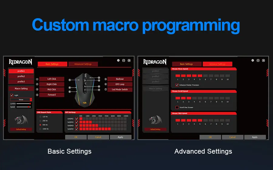 Пришла в комплекте с драйвером на mini cd, но так как у меня не рабочий привод, скачал из интернета, это хорошо. Есть возможность настроить макрос (последовательности клавиш). Ездит хорошо, на ощупь приятная, красивая подсветка. Приятные клики. Не смог открыть грузики, но меня всё устраивает.