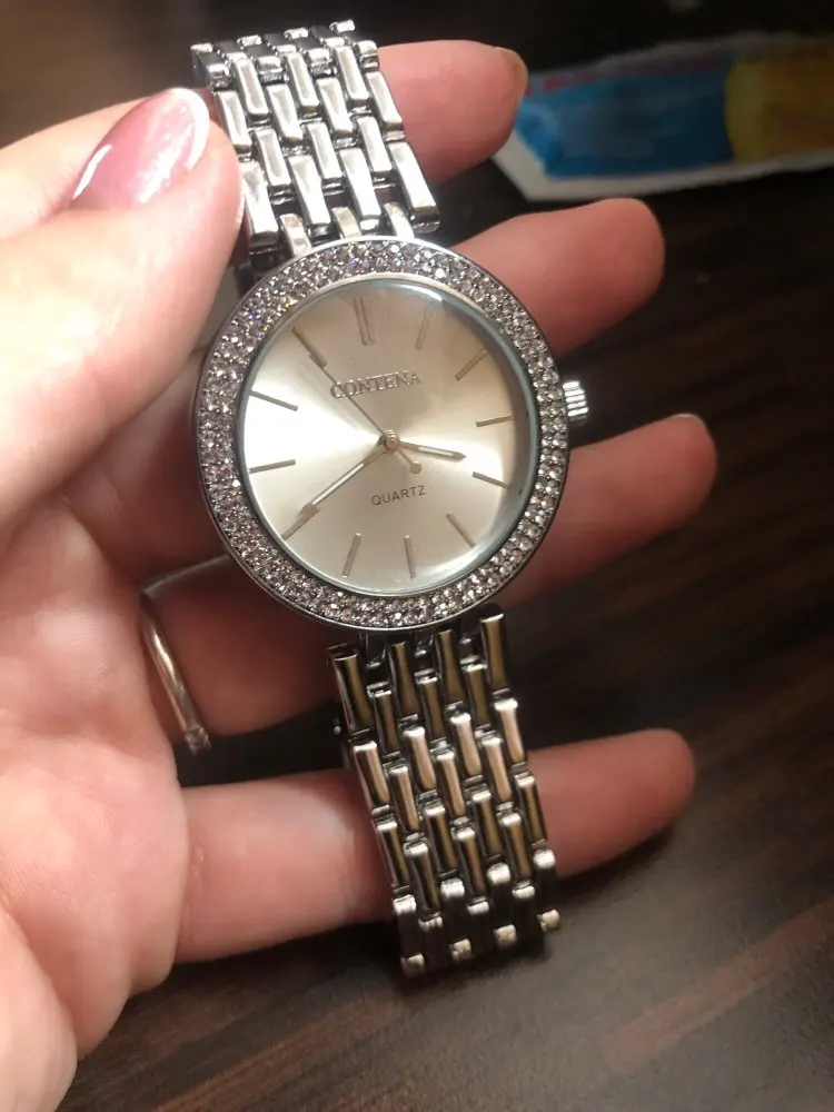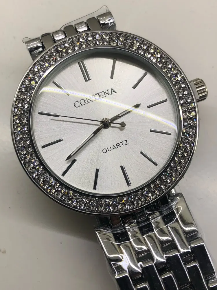 CONTENA модные роскошные серебряные часы женские наручные часы со стразами женские часы из нержавеющей стали часы reloj mujer