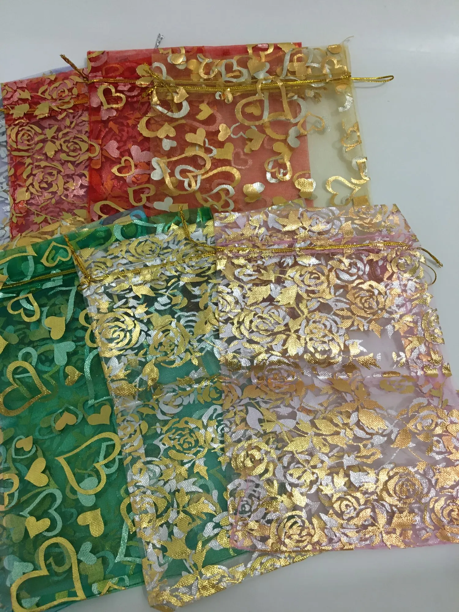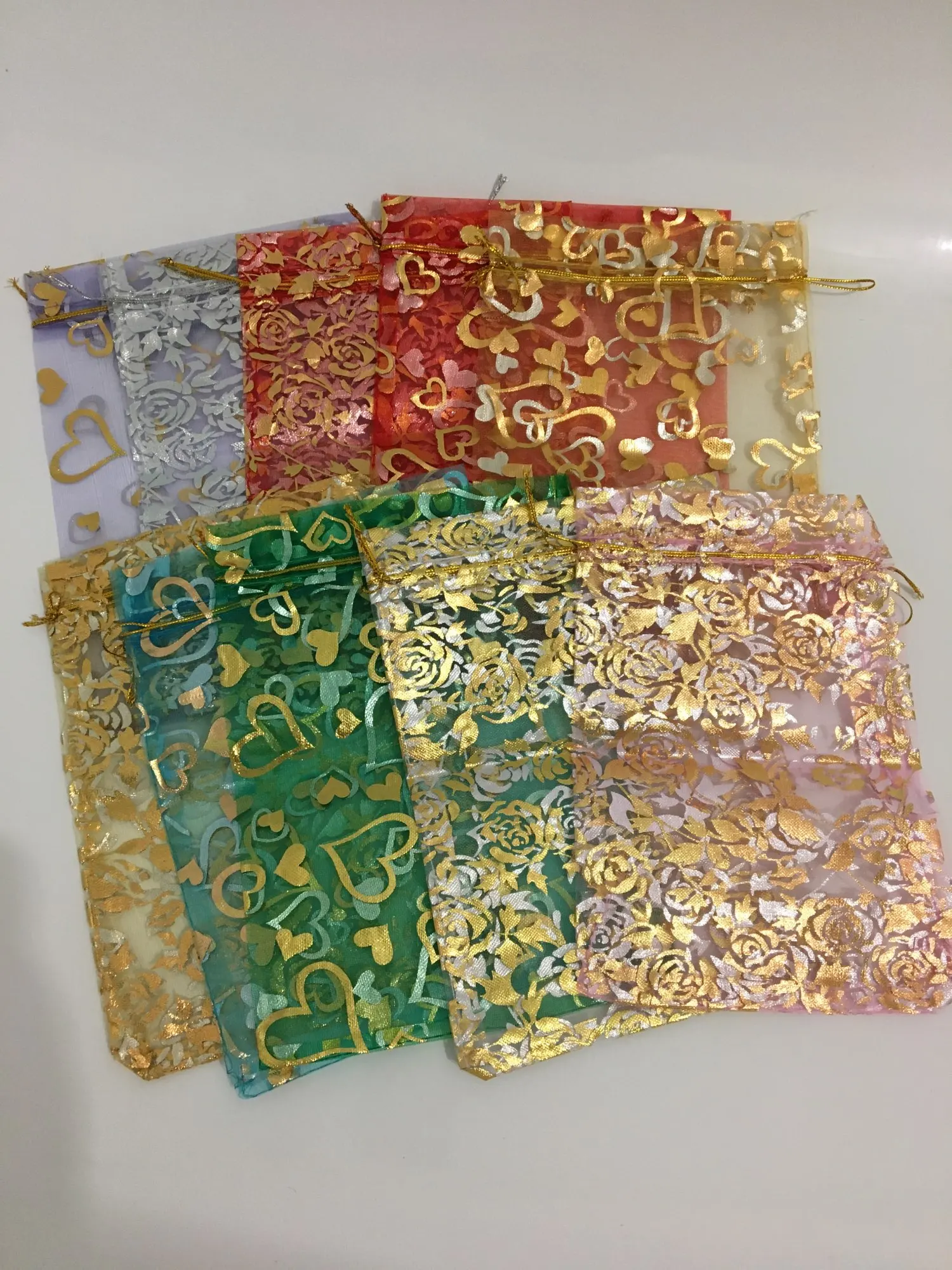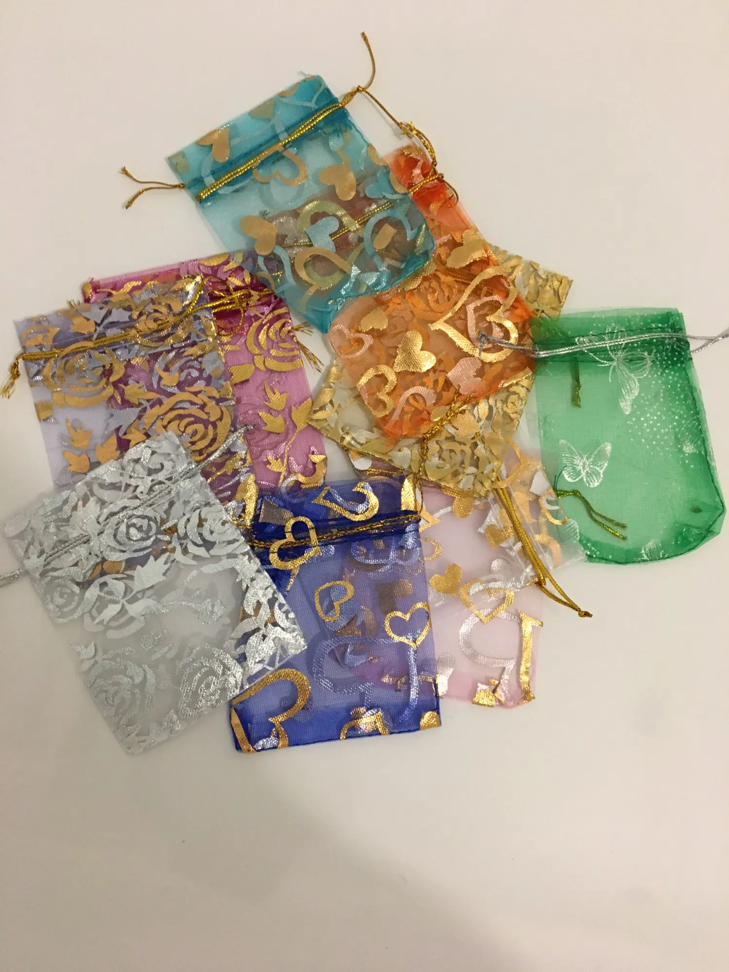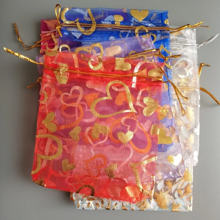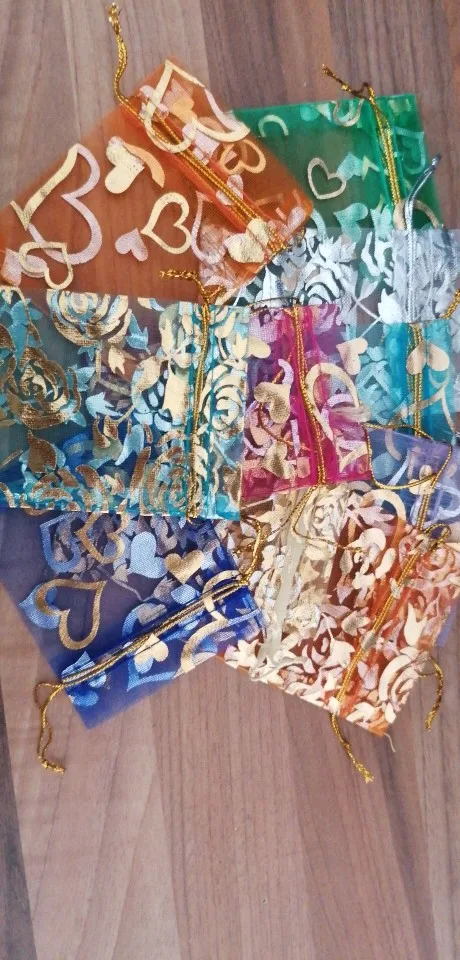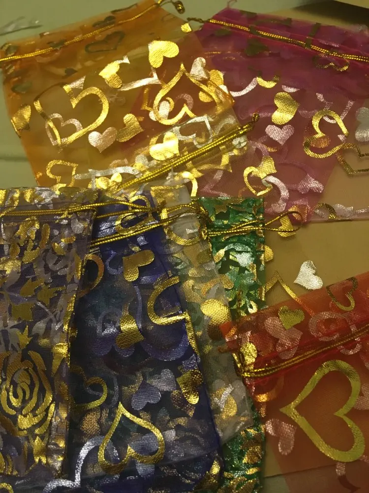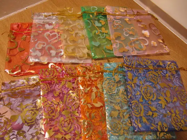 OMH оптовая продажа, 10 шт., 15 цветов, Микс, любовь, сердца, розы, рождественские, свадебные мешочки из органзы, упаковка для украшений, подарок, BZ08-21
