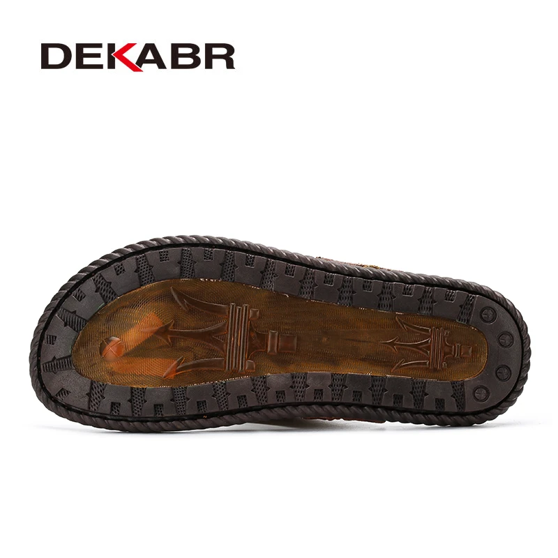 Мужские пляжные сандалии из воловьей кожи DEKABR, коричневые слиперы, модные шлепанцы с мягкой подошвой, воздухопроницаемая обувь, лето 2019
