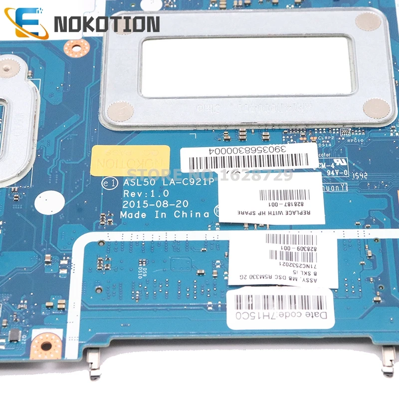 NOKOTION ASL50 LA-C921P 828187-601 828187-001 828187-501 Материнская плата для ноутбука HP 15-AC 15-AC637TX I5-6200U Процессор 2 Гб GPU