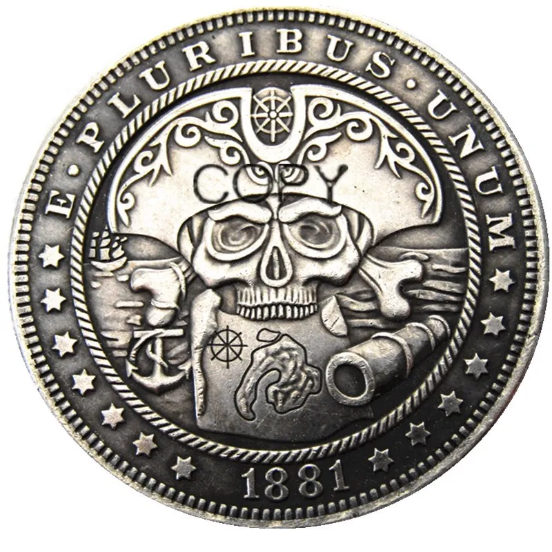 Монеты с серебряным покрытием, Череп, зомби, США 1881, Морган, доллар