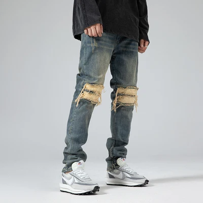Джинсы мужские Плиссированные до колена, в стиле хип-хоп