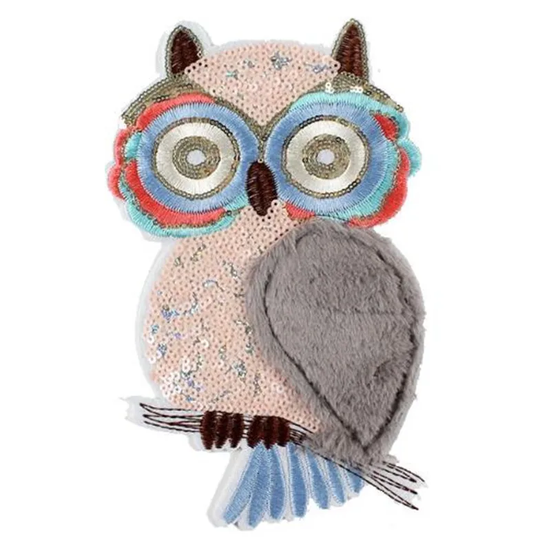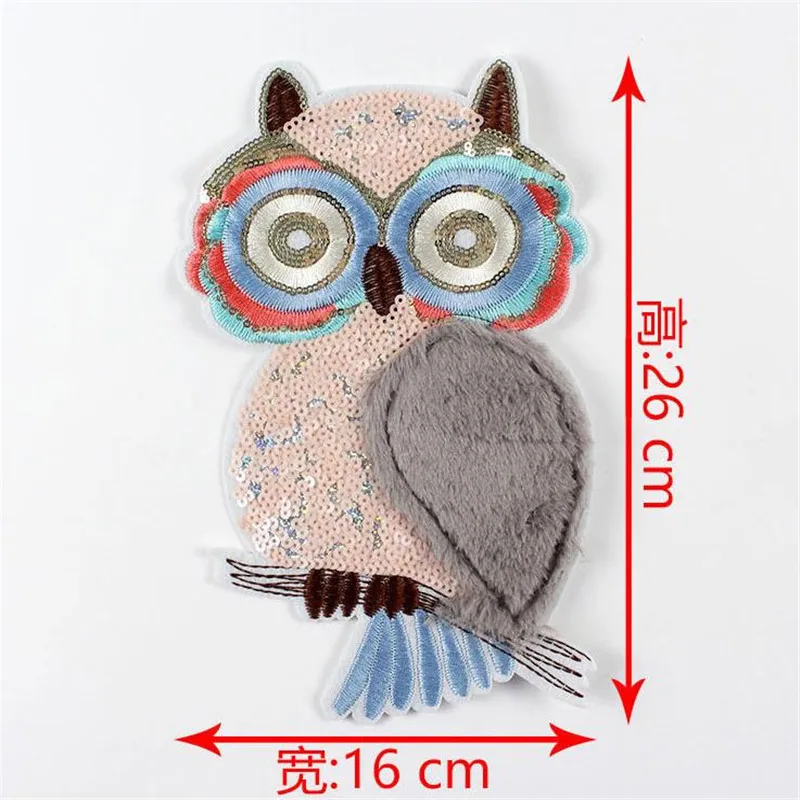 Плюшевые нашивки в виде совы, наклейки для одежды, женская футболка 26 см с блестками и птицами, модные топы, рубашка, нашивка для девочек