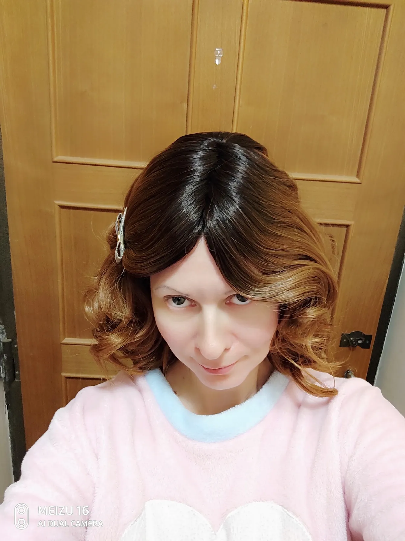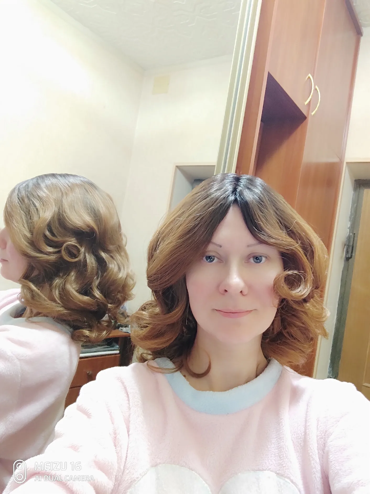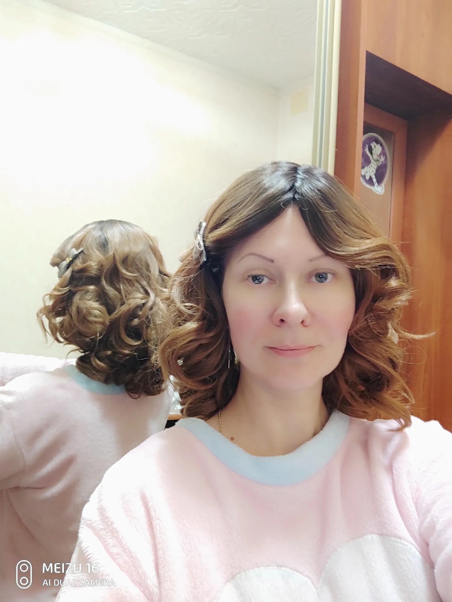 Симпатично сидит в целом, пробор НЕ виден, искусственным не кажется, т.е все нормально. Не знаю можно ли в нем на улицу, но для выхода в скайп (и пр.) + для фото точно подойдет. Спасибо продавцу за доп.шапочку и накладные ресницы))