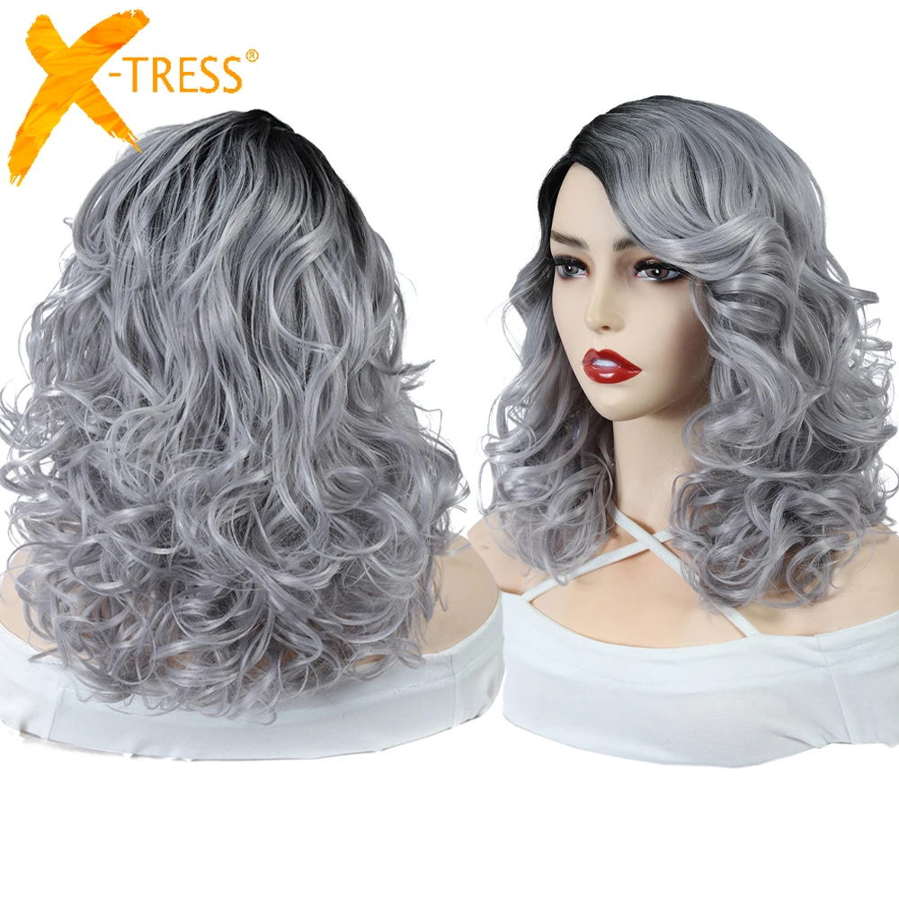 Парик Боб из синтетических волос, 12 дюймов, Термостойкое волокно серого цвета, без клея, с боковой частью, для чернокожих женщин, X-TRESS