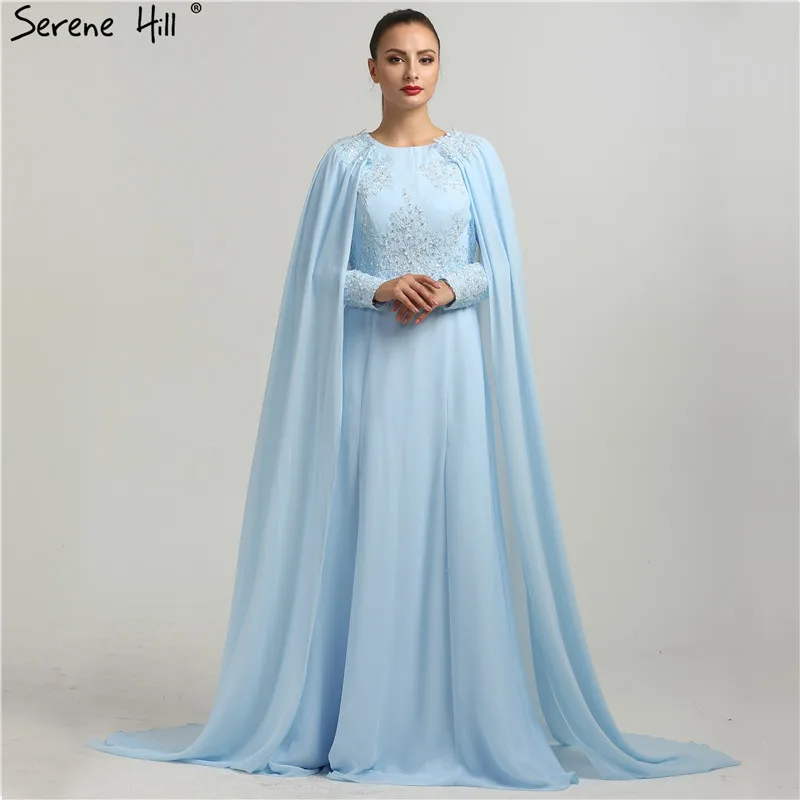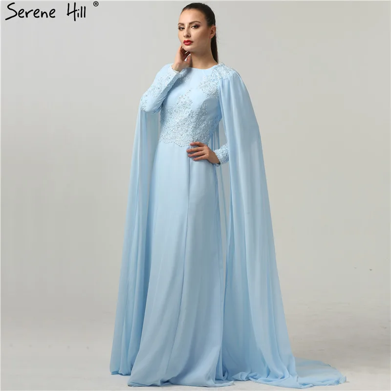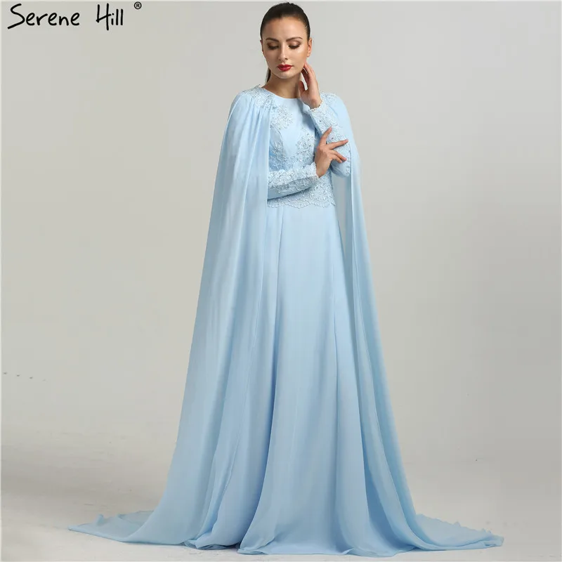 Длинные рукава модные пляжные вечерние платья с аппликациями жемчуг с шапочкой шифоновые вечерние платья 2021 новые Serene Hill HA2134