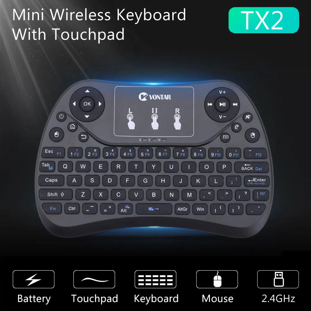 Беспроводная клавиатура VONTAR TX2 Plus, QWTREY, 2,4 ГГц, тачпад, Fly Mouse с подсветкой, Android TV BOX X96 mini