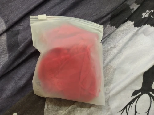 Пришло достаточно быстро, посылка отслеживалась. Цвет насыщенный красный, на резинке, силиконовой основы нет, это огорчило.