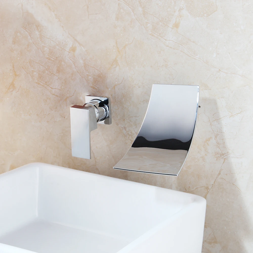OUBONI черная живопись настенный водопад позолоченный хром Ванная раковина кран Одной ручкой смеситель горячей и холодной воды