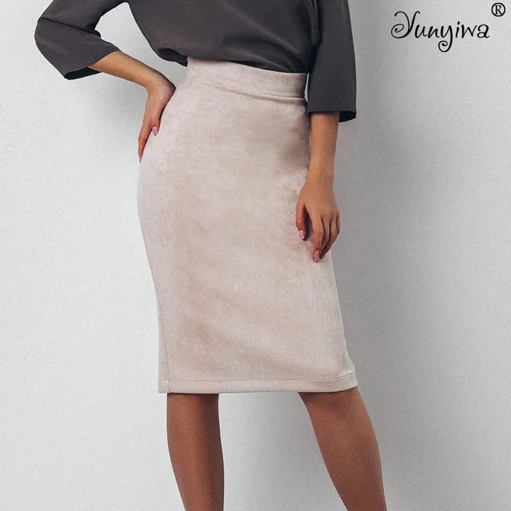 Женские юбки, замшевые, толстые, юбка стрейч, женские, Осень-зима, обтягивающие, сексуальные юбки-карандаш, размера плюс