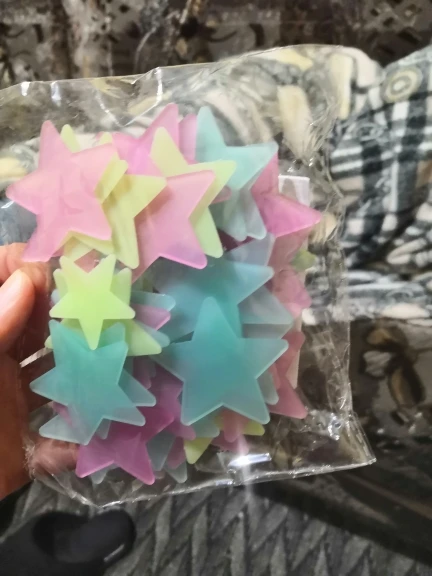 Отличные звезды! Их очень много и они достаточно крупные, хватит на целую комнату. Хорошо светятся. Особенно голубые и жёлтые. За свою цену - шикарно, рекомендую!