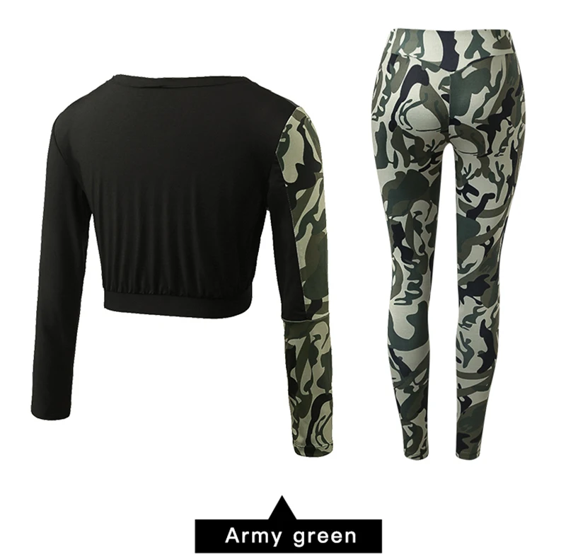 Комплект для йоги женский спортивный костюм для фитнеса спортивный костюм женский Камуфляжный Компрессионные Леггинсы для йоги одежда для тренировок одежда для тренажерного зала