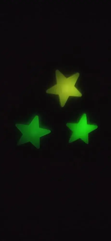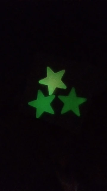Соответствует всем обещаниям, они действительно светятся в темноте яркость intesidade зависит от интенсивности света, которая получает, и яркость времени также! Но обнаружили, что яркость будет немного более сильной, было бы очень